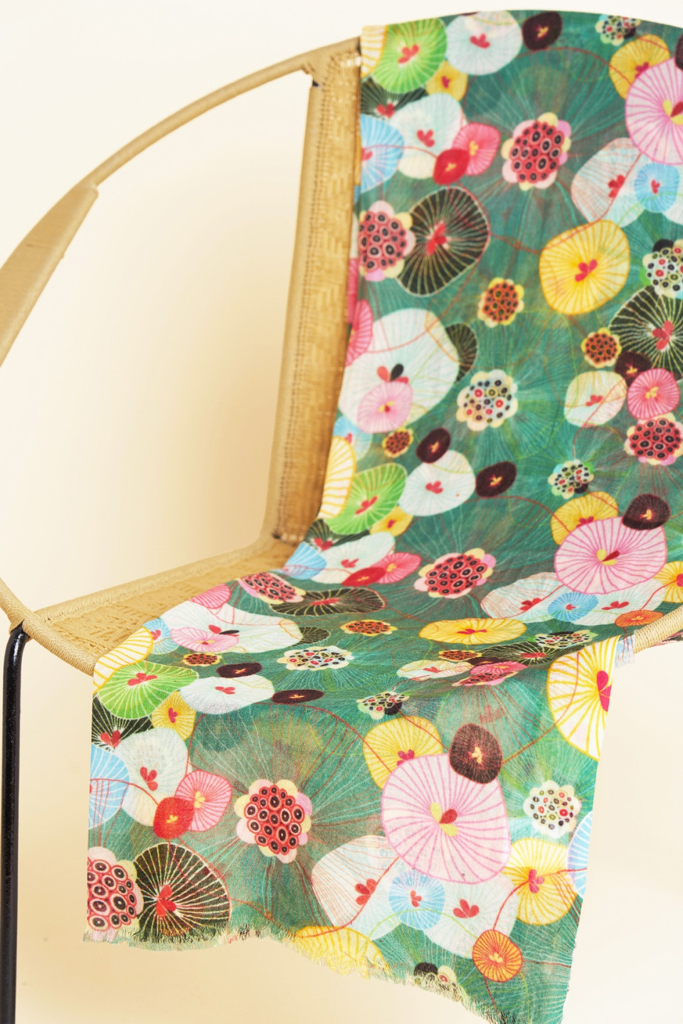 Discover our Aventura wool and silk scarf with graphic pattern. This accessory is designed to catch the eyes with its colorful designs. Whether your wear it to brighten up a casual outfit or add a touch of sparkle to a formal outfit, this scarf instantly transforms into a wardrobe staple.