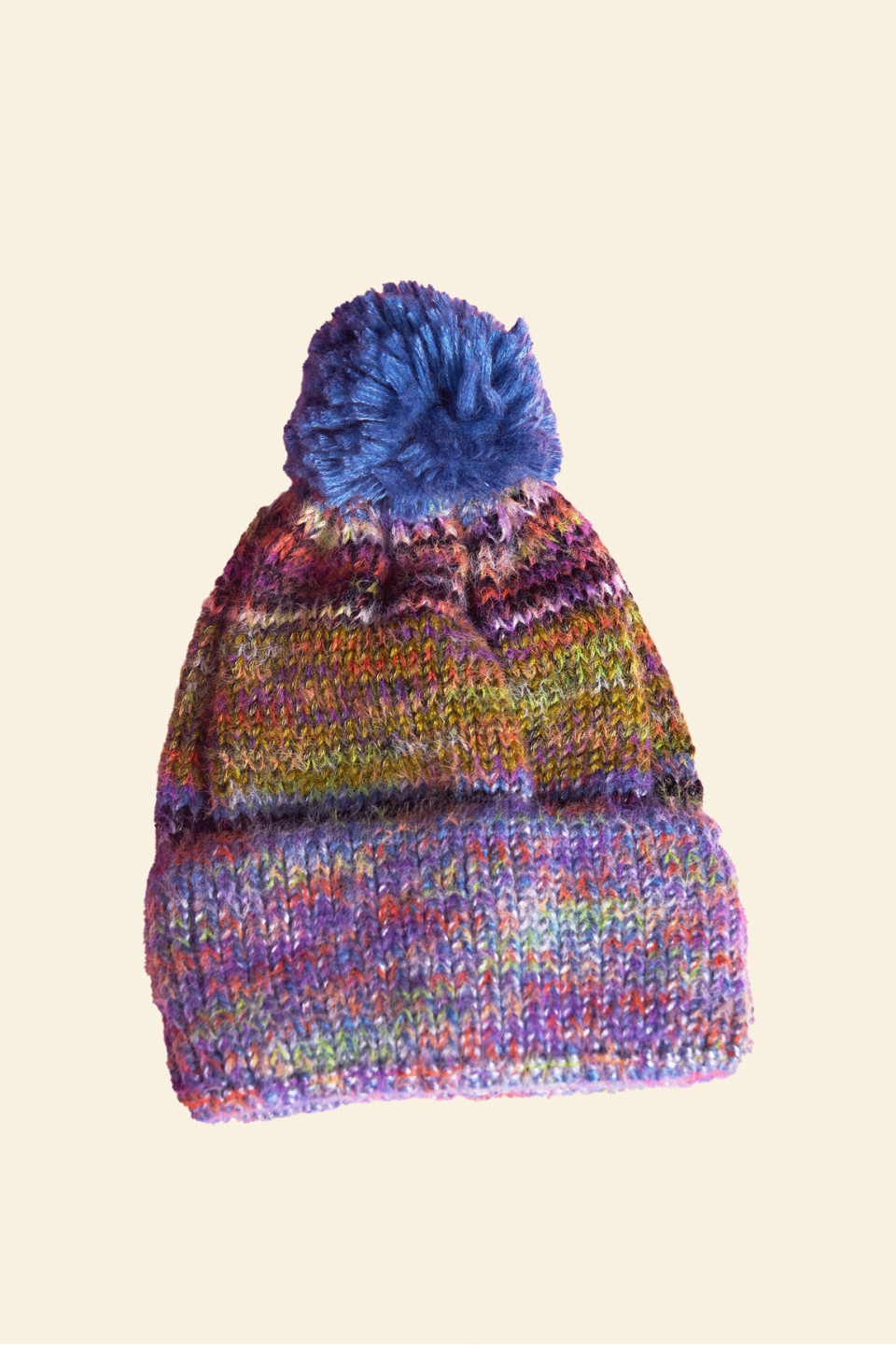 Add a touch of fun to your winter outfit with our multicolored cap adorned with a pompom. This hat is perfect for a trendy and comfortable winter look.