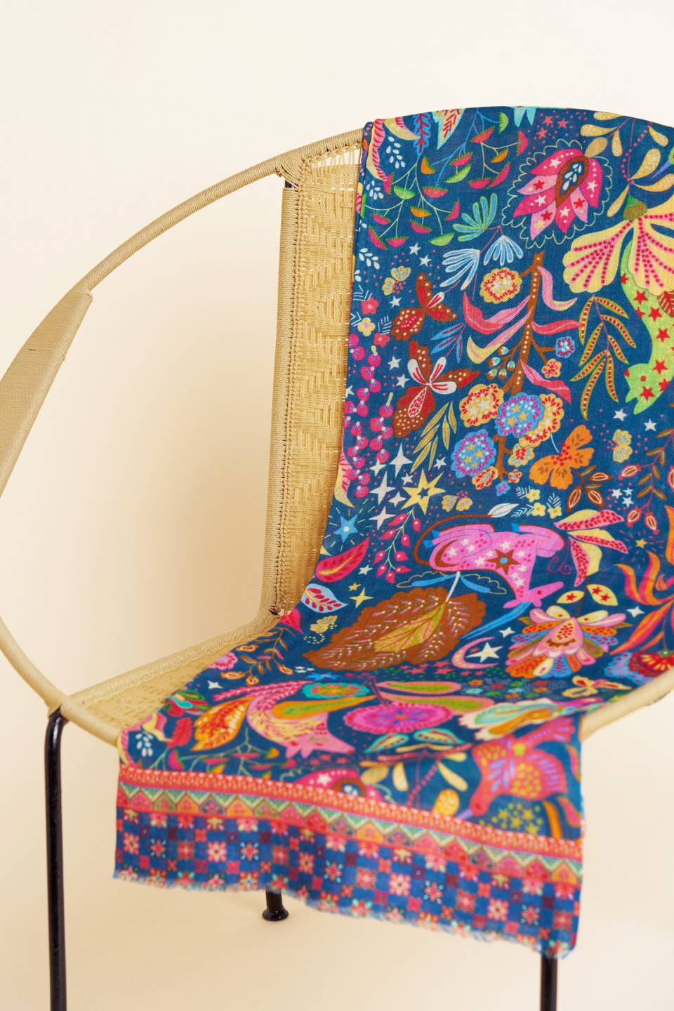 This wool and silk scarf invites you into an imaginary world, populated with floral patterns, animals and delicately worked details. A 1 piece of expression, it brings an artistic and whimsical touch to your outfit, without ever compromising elegance.