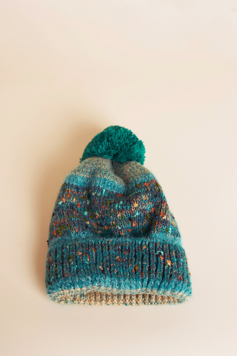 Comfortable, warm and full of character, this wool-blend beanie revisits a classic in style. Its fancy knitwear, its heathered knit and its voluminous pompom create a unique blend of textures, for an artisanal and authentic touch.