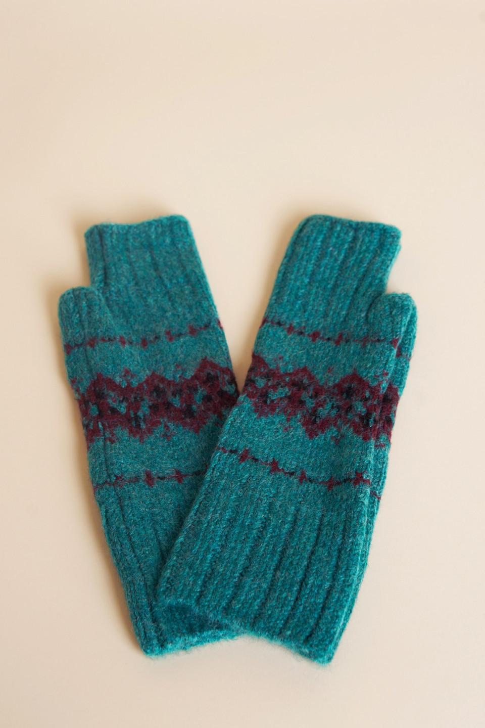 Perfect for winter or cool days, these fancy mittens blend warmth and style with their colorful graphic pattern. Knitted in a soft and fluffy knit, they keep your hands warm while leaving your fingers free.