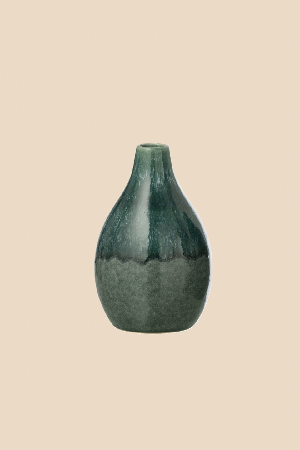 Joli vase aux tonalités de vert. Hauteur: 20.5 cm Longueur: 13.3 cm Largeur: 13.3 cm