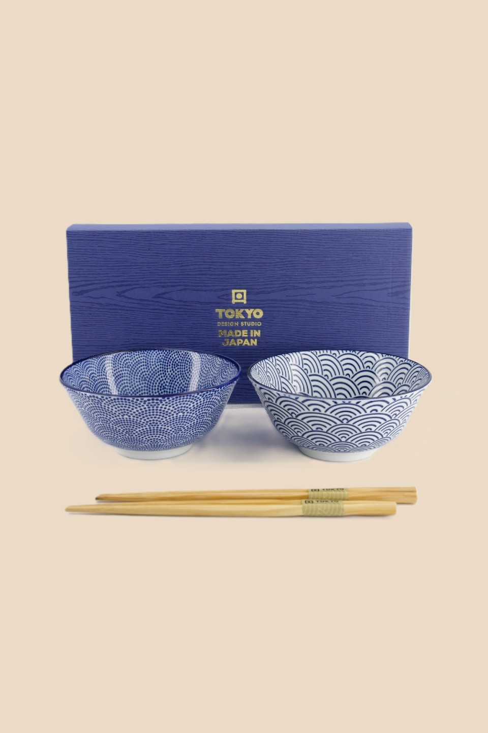 Set of 2 Tayo bowls, ideal for Asian cuisine! Colour: Blue, White Capacity: 250 - 500 ml Material: Porcelain Dimensions: 15.2x6.7cm Made in Japan