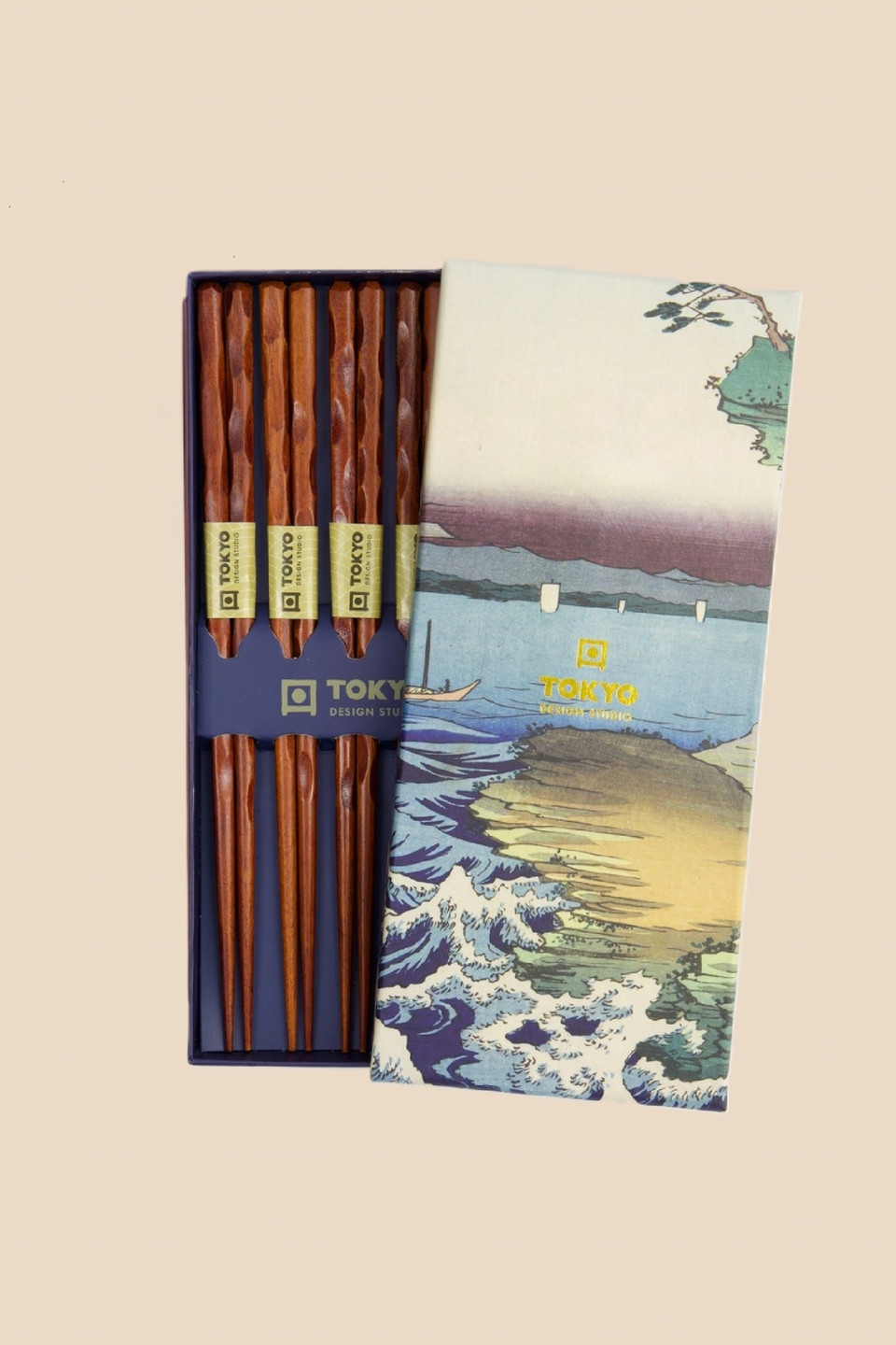 Japanese chopsticks, "hashi" or "ohashi" are thinner and pointed at the ends, unlike Chinese chopsticks.