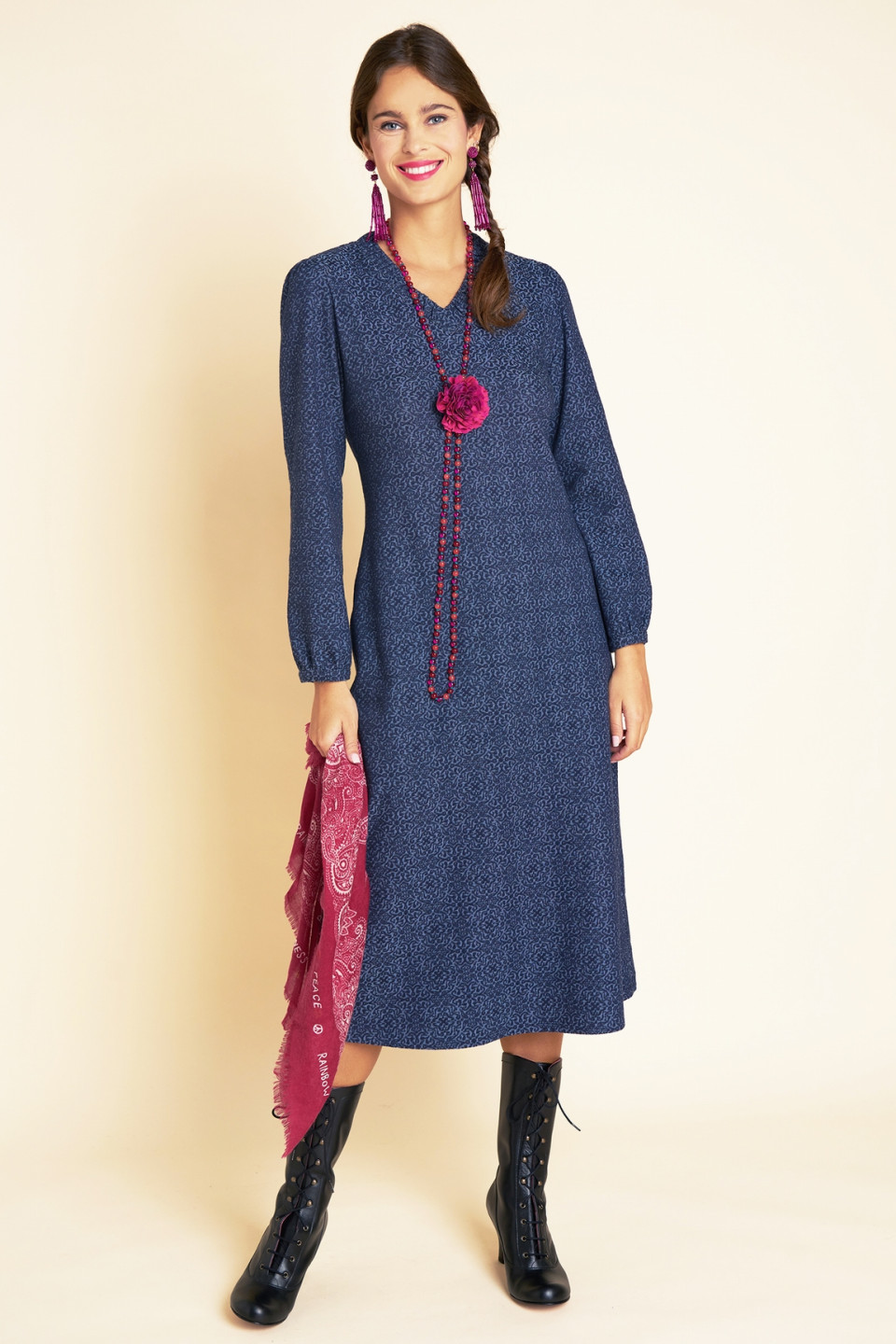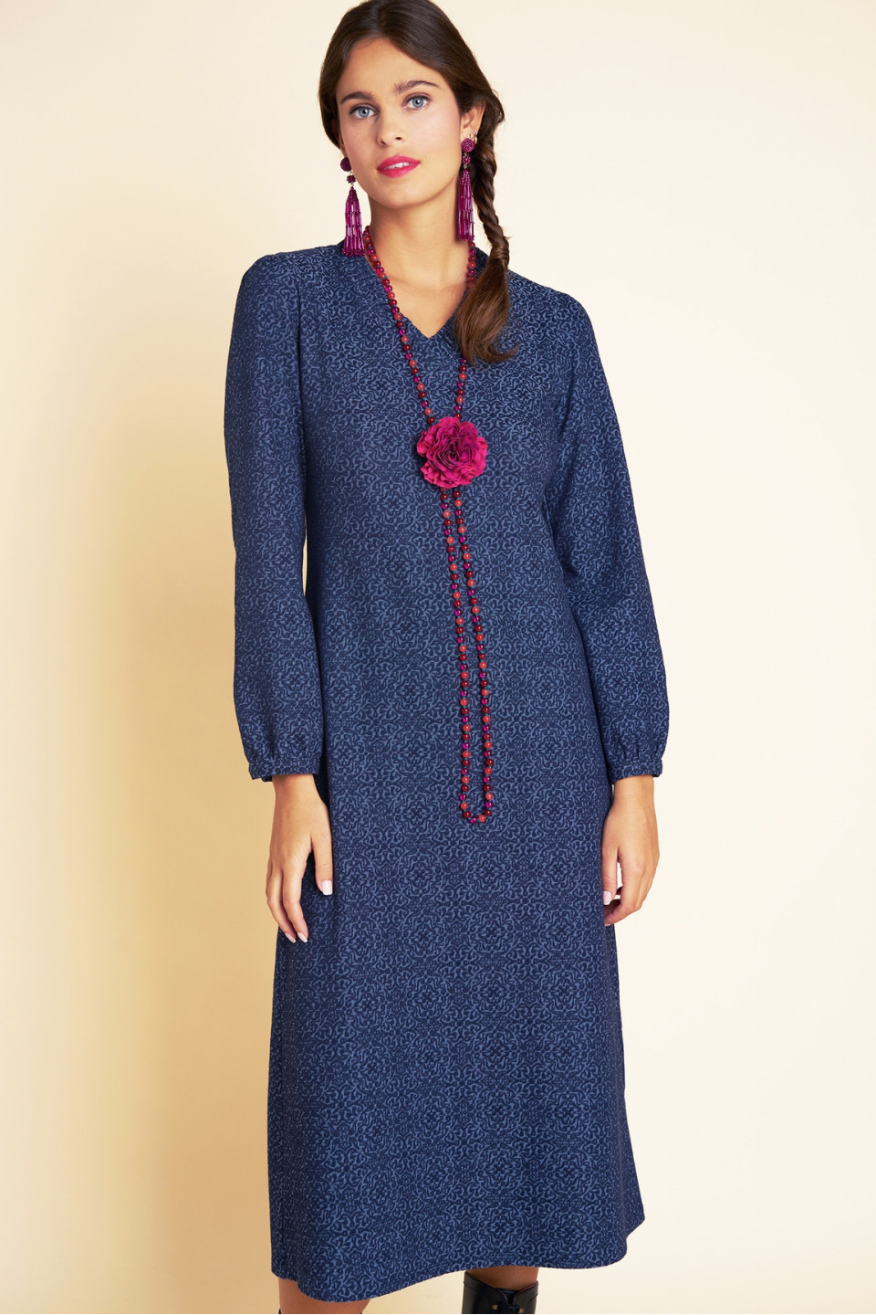 Assert your style with the Citadelle dress, a strong piece of singular charm. Its enveloping dark blue fabric highlights the silhouette with character. Its draped V-neck, slightly puffed long sleeves and loose fit provide structure and comfort. An ideal ally for an assertive look, between softness and elegance.