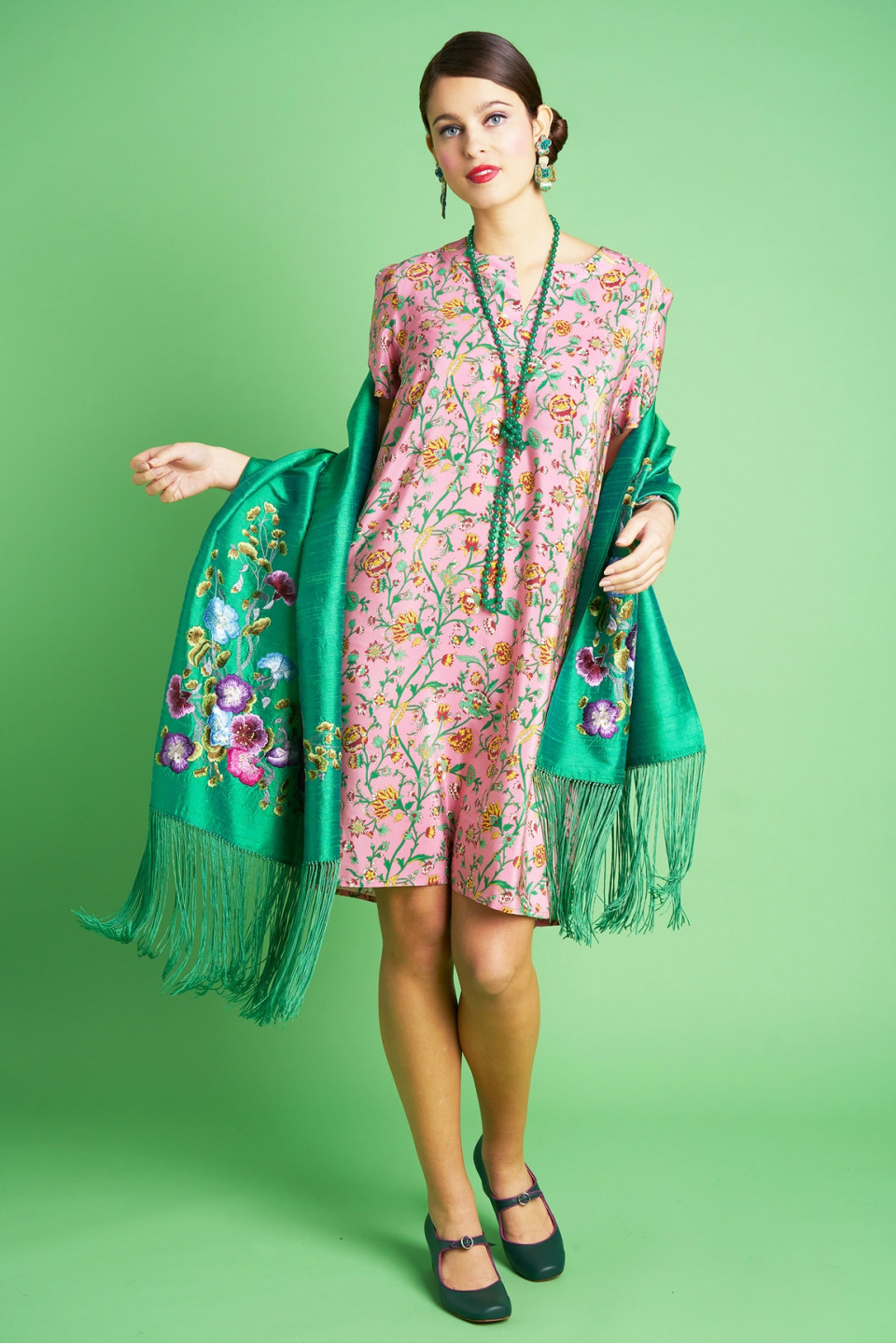 Opt for casual elegance with our purple silk dress, a piece that combines refinement and simplicity. Its soft pink color, embellished with floral details, gives it a charm and an elegant and modern look. With its fluid and ample cut, it adapts perfectly to all morphologies, offering both comfort and style. Draped sleeves add a sophisticated touch, while silk ensures lightness and softness for everyday comfort.