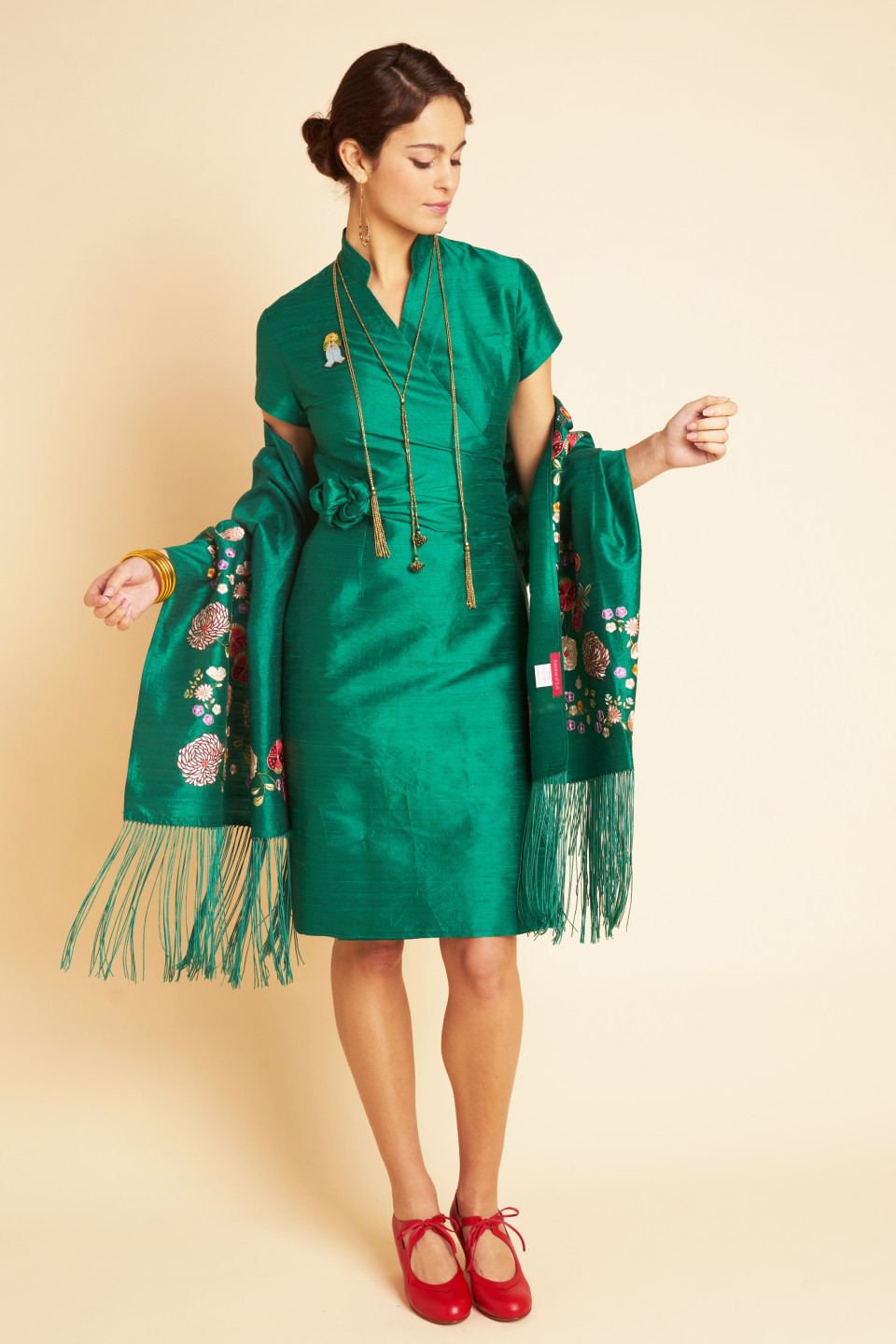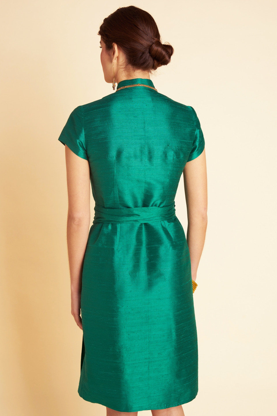 Choose this elegant Chinese dress wallet in wild silk, with its mao collar and wide belt tied at the waist.
