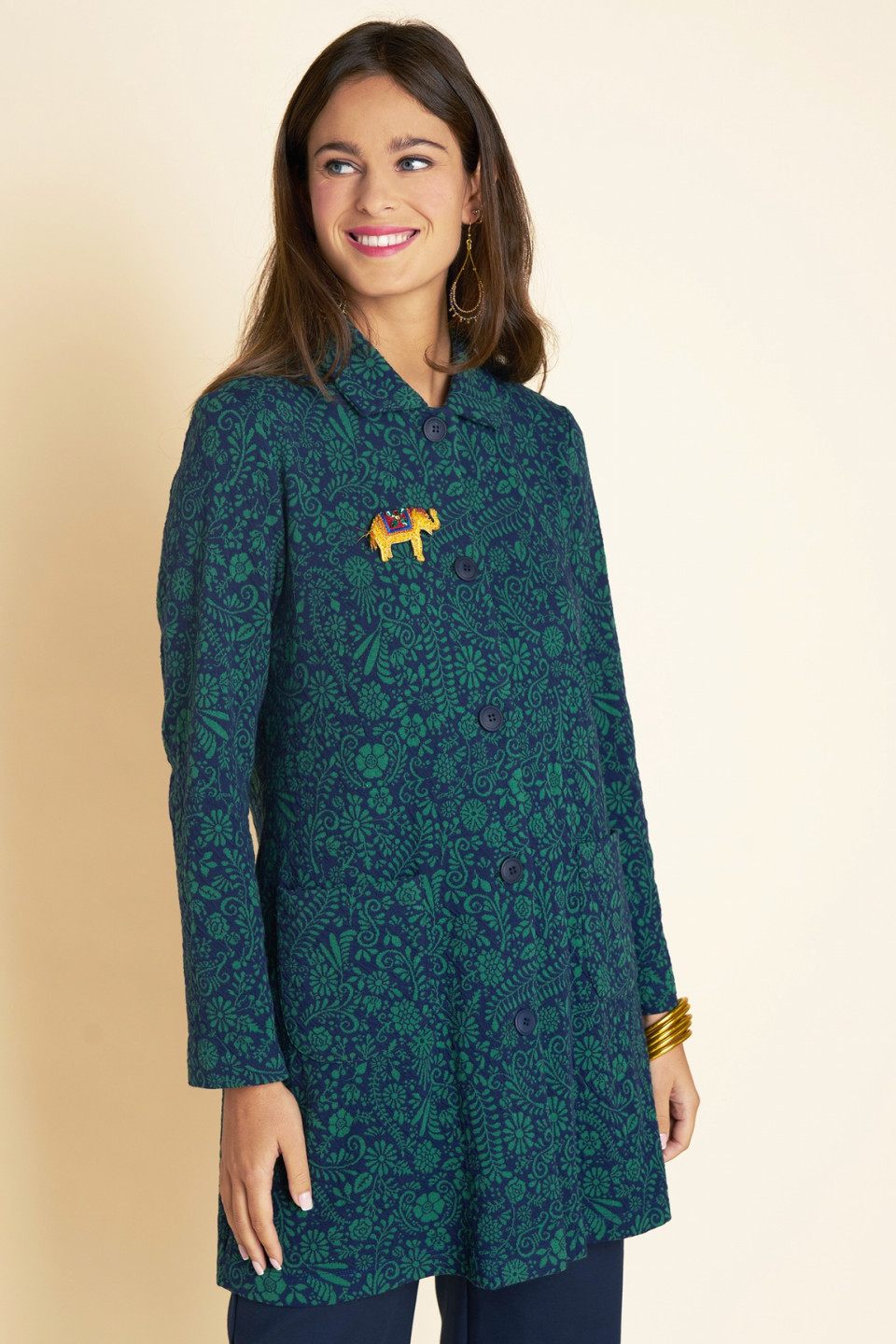 Let yourself be seduced by the charm of the Mexico coat , made in a sumptuous jacquard exclusif . Its mid-length and...