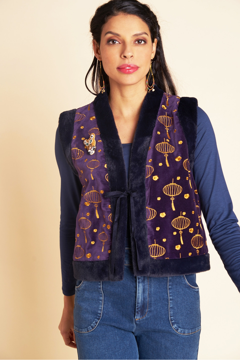 MADE IN FRANCE IN SMALL SERIES < To warm up in style this season, opt for the Zen embroidered vest , adorned with delicate lantern embroidery and thought...