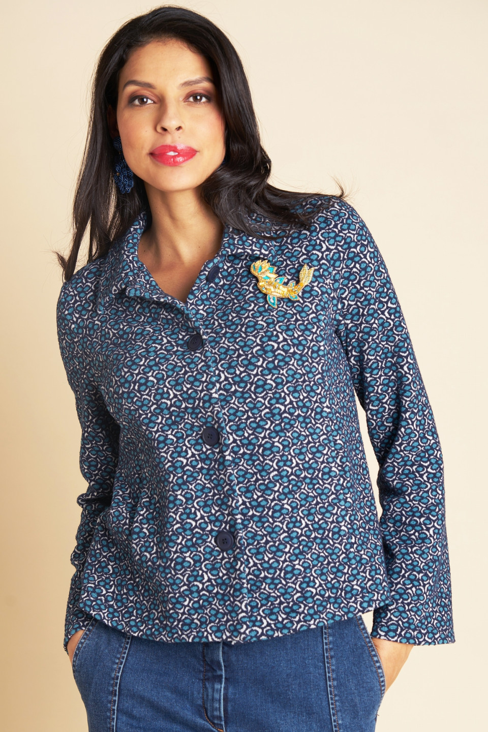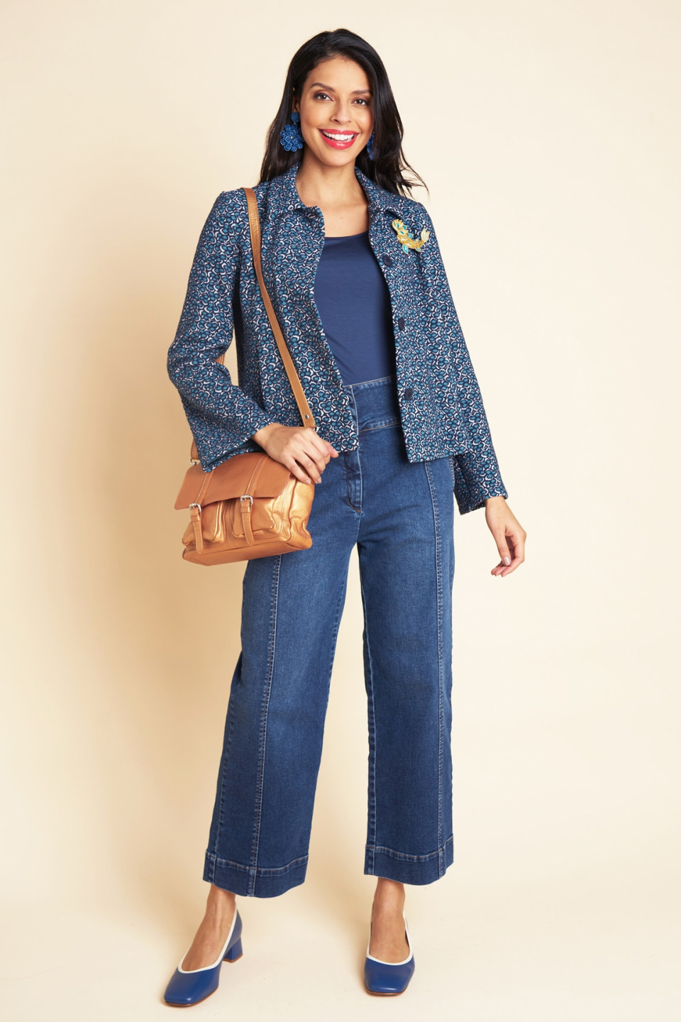 Discover our Bleuet jacket, a chic and structured piece with elegant style. Crafted in an exclusive jacquard both structured and comfortable, it offers a flawless fit while sublimating the silhouette. Its button closure on the front brings a classic and refined touch, ideal to enhance your everyday outfits as well as your more dressy looks..