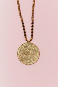 Immerse yourself in a world of textures and exoticism with our ethnic style Dreki necklace. This necklace embodies the essence of ethnic craftsmanship, combining the elegance of brass with the vivacity of pearls to create a captivating jewel.