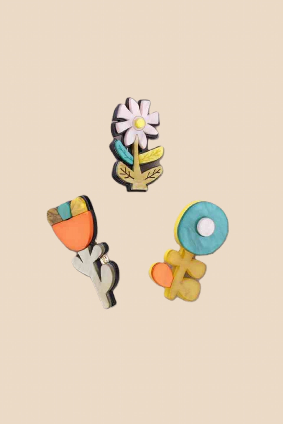 Set Of 3 Resin Flower Brooches