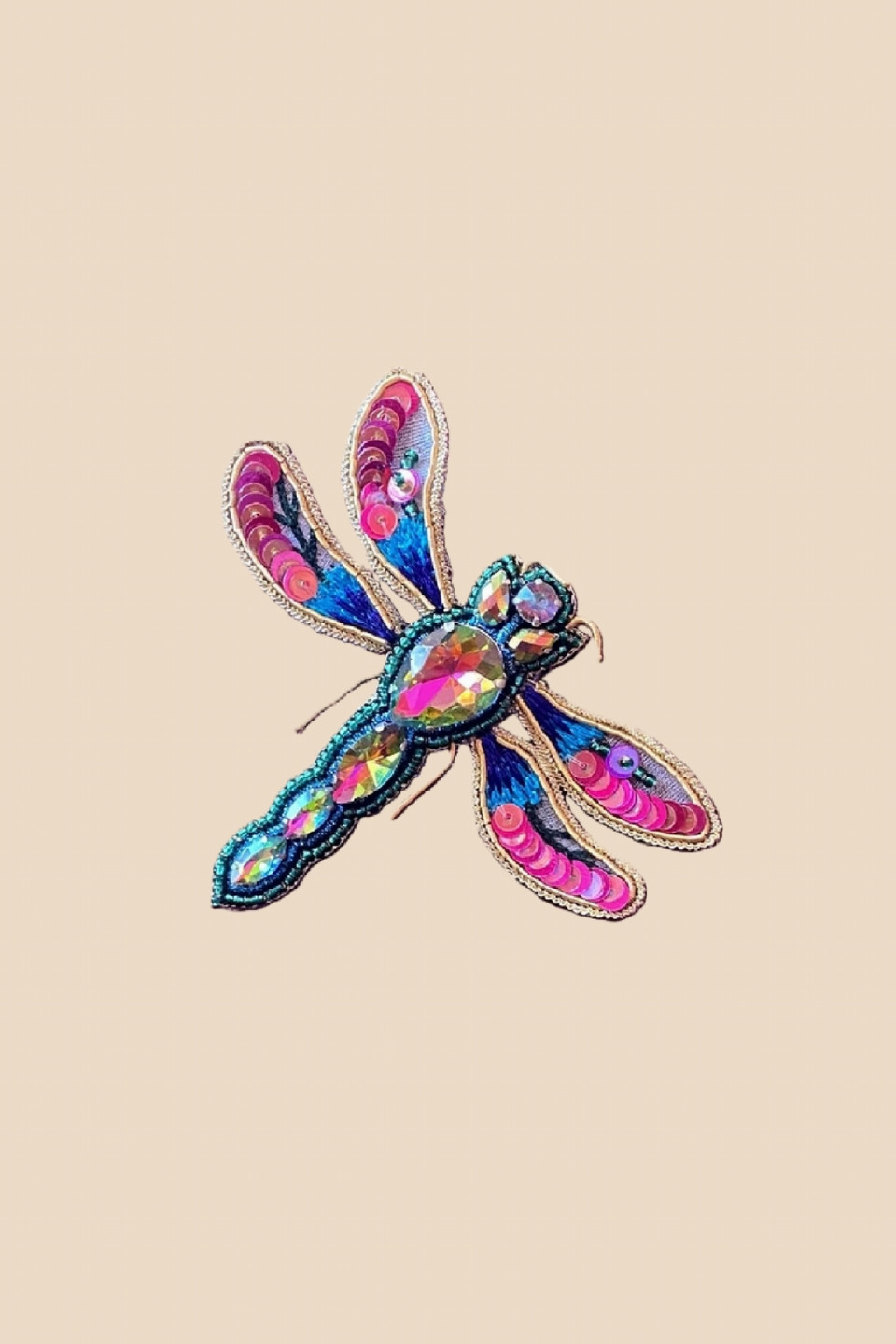 Enhance your outfits with our Dragonfly brooch for a romantic and colorful touch. This brooch is adorned with sparkling crystals and coloured pearls.