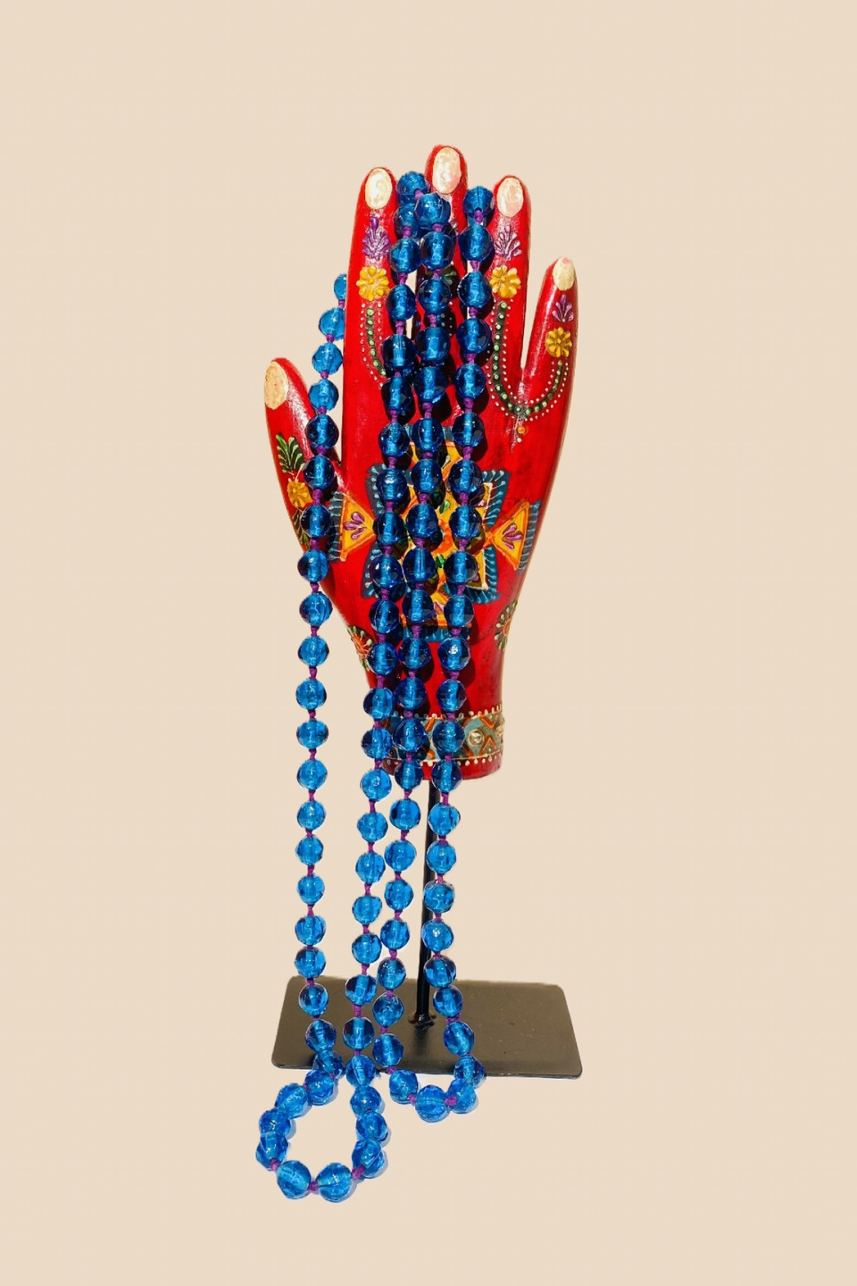 Pretty long necklace with glass beads. Nice, translucent and gleaming colours. A nice touch of colour for your daily outfit!