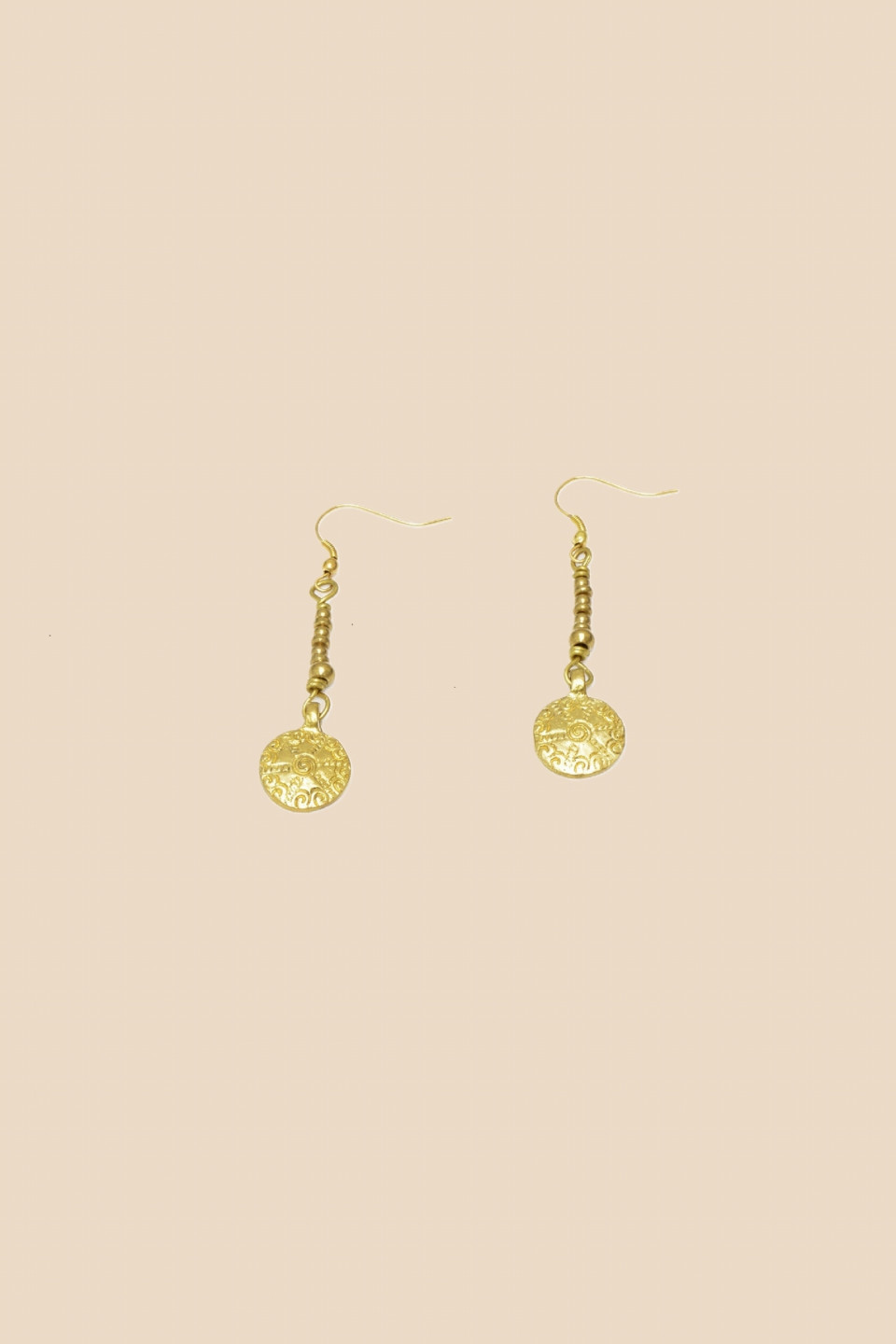 Simple yet elegant, our Chakra earrings enhance any outfit. Their delicate design highlights a gold brass medal, suspended with finesse for a chic and timeless look.