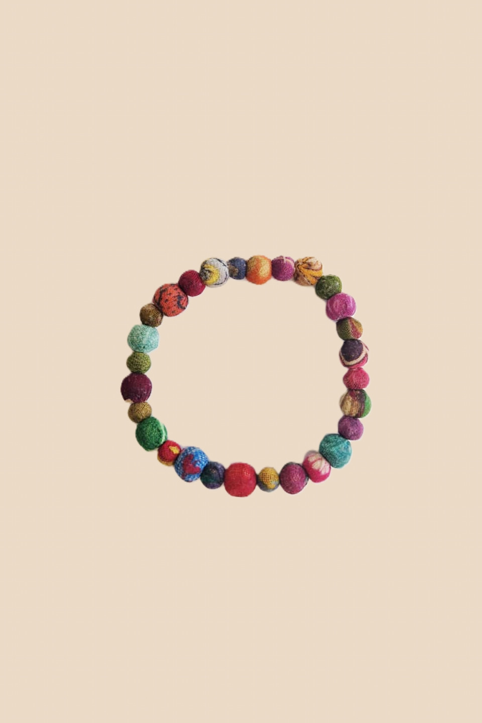 Bring a touch of originality to your wrist with this bracelet adorned with small fabric balls in vibrant colors and full of character.