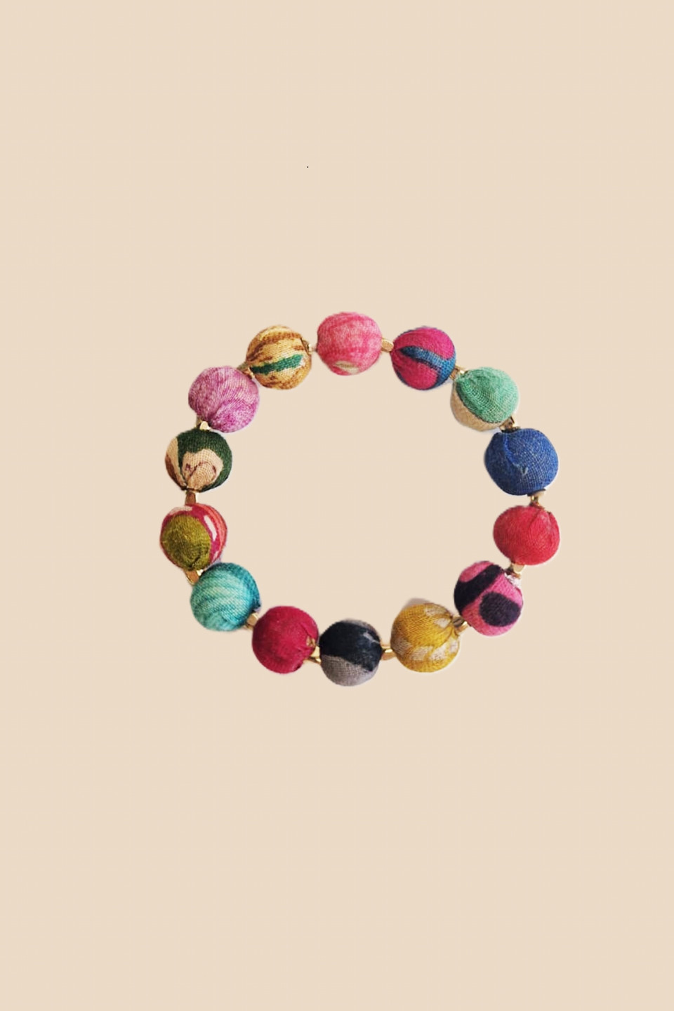 Bring a touch of originality to your wrist with this bracelet adorned with balls in vibrant colors and full of character, enhanced by delicate golden brass beads that give it an elegant and refined note.
