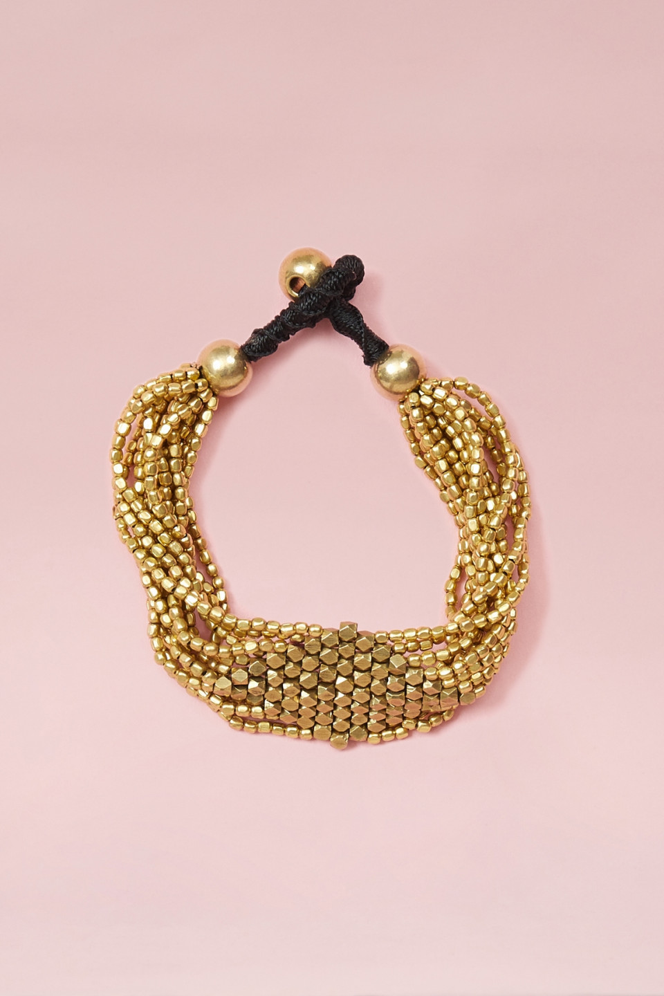 This golden multi-row bracelet will add an elegant touch to your outfit.