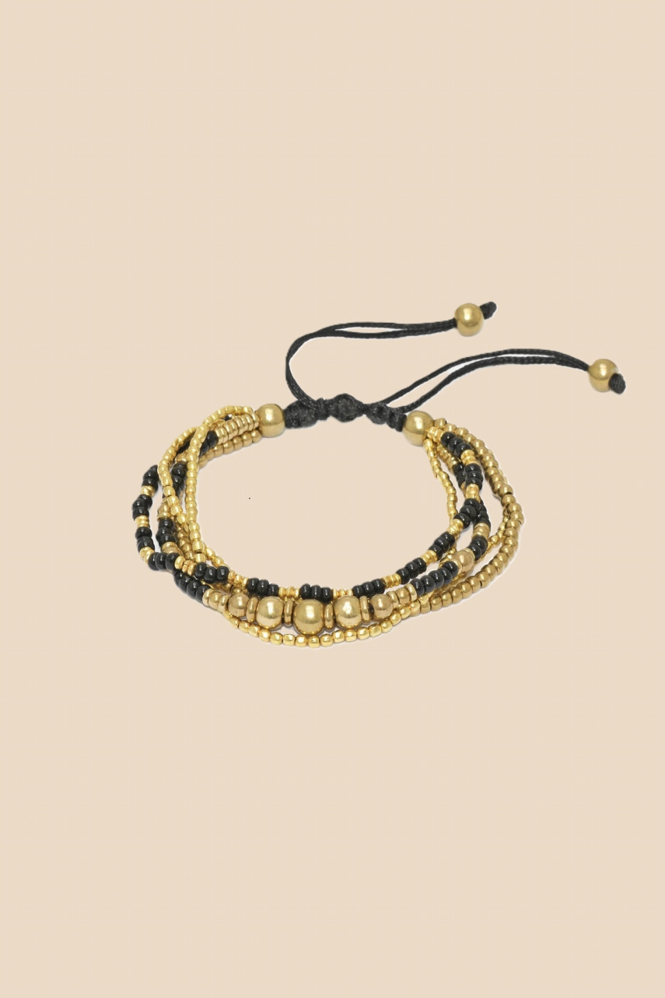 This beautiful Célia bracelet with multirangs dresses your wrist with subtlety, it can be worn alone or with golden bangles for a grand effect. It is the perfect jewel to offer because thanks to its cord, it fits every wrist.