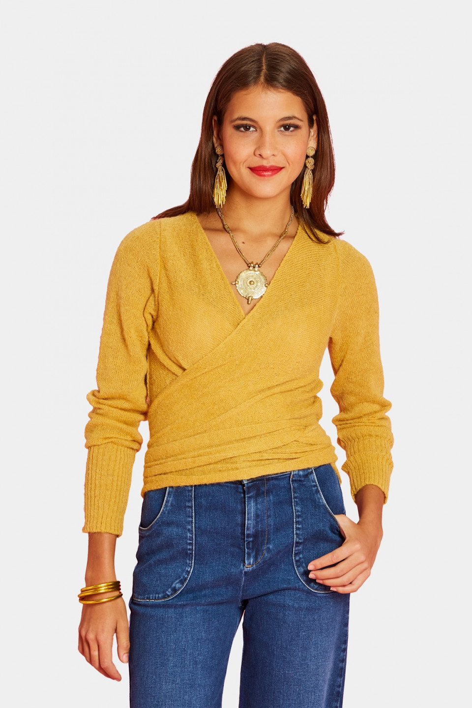 Timeless crossover cardigan made with ALPAGA. Long sleeves and fastening to tie up as you wish. Perfect with a shirt or a t-shirt, wear it open, crossed at front or...