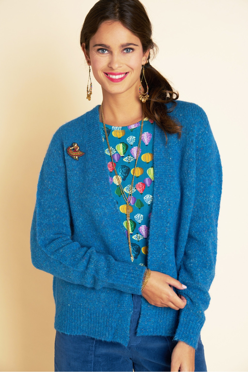 Combine comfort and style with our Connor cardigan, an essential cocooning that combines warmth, flexibility and well-being. Open at the front for a relaxed look, it can be worn as is or elegantly closed with a pretty brooch. Its play of contrasting stitches and subtle shades give it character, while its intense colors enhance all your outfits with refinement.