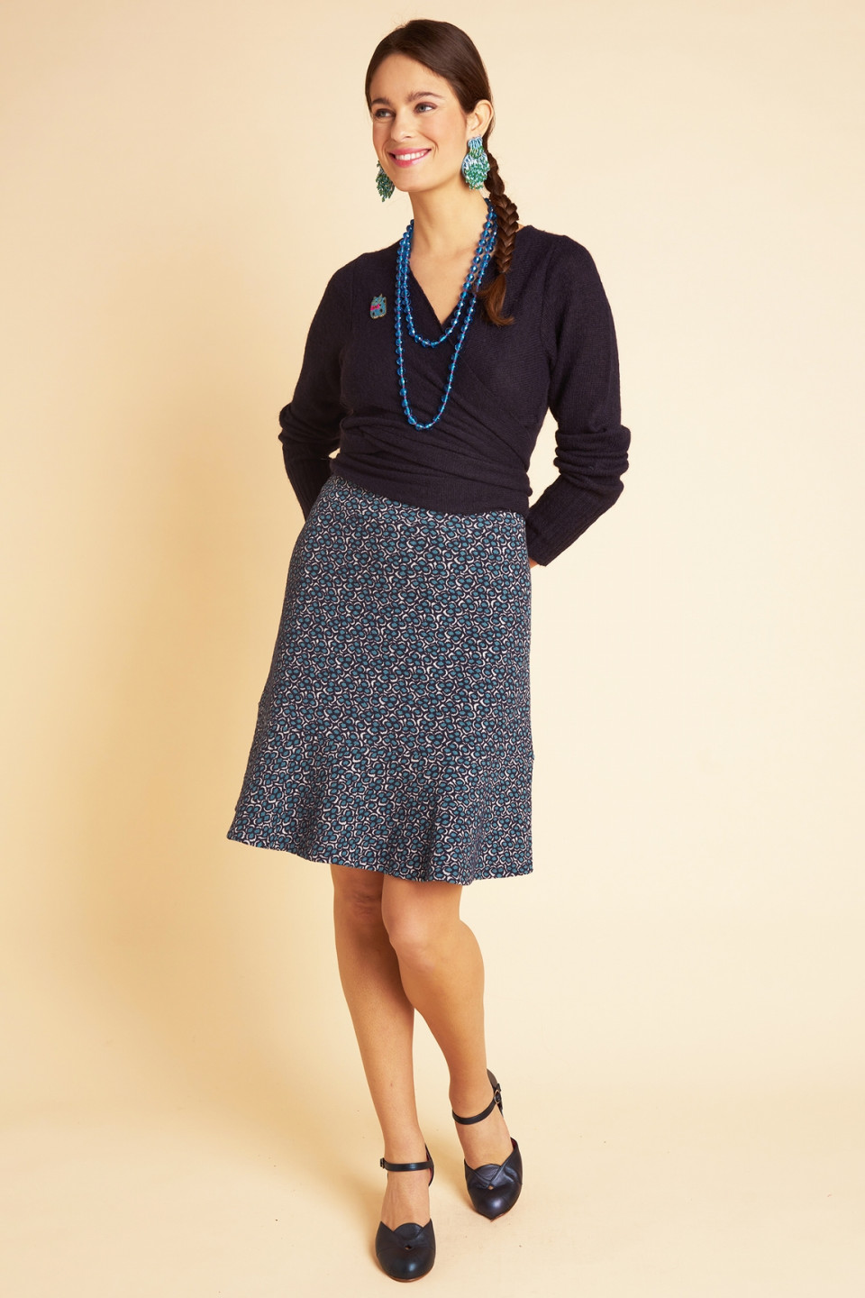 Let yourself be seduced by our Bleuet skirt, an elegant and feminine piece. Its fluid and slightly flared cut accompanies movements with lightness, while highlighting the silhouette. Crafted in an exclusive jacquard, it is easy to match and goes just as well with a sweater for a casual look as with a blouse for a more formal look.