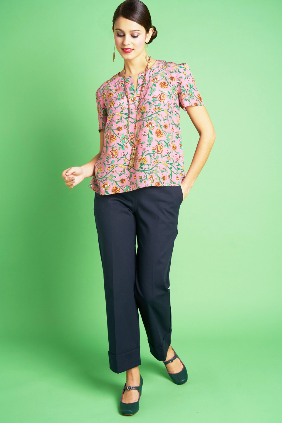 Embrace elegance with our purple silk blouse, a perfect blend of femininity and refinement. Its pink shade and floral details sublimate this essential piece, ideal to enrich your wardrobe. With its fluid and ample cut, it adapts harmoniously to all silhouettes. The delicately draped sleeves add a sophisticated and romantic touch, while its 100% silk composition offers you lightness and comfort for an uncompromising style.