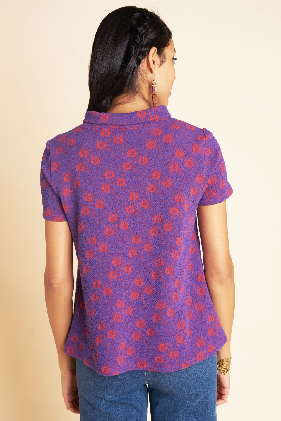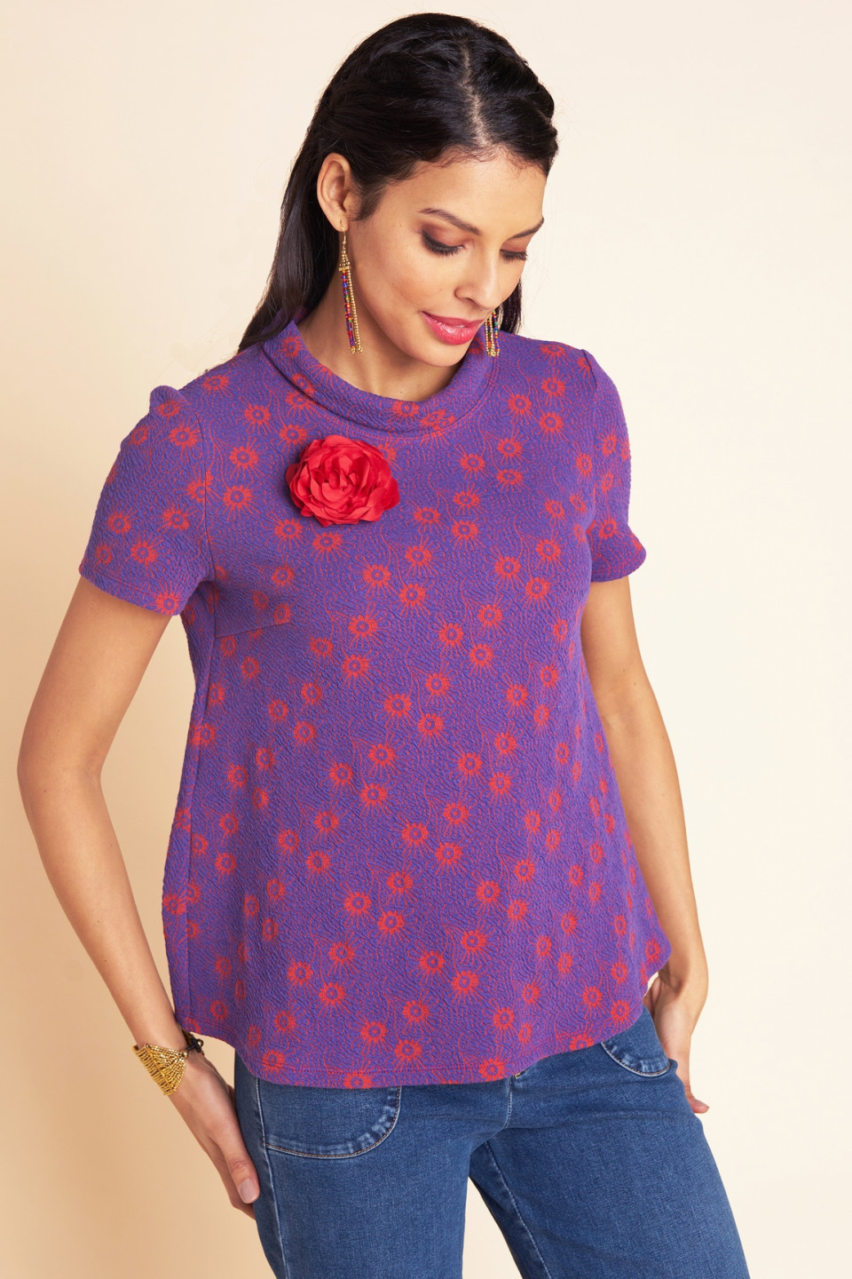 Discover our top Daisy, sublimated by a delicate floral print with bright accents. Its slightly flared cut brings fluidity and comfort, while its short sleeves and round neck emphasize a feminine and modern silhouette. A room full of charm, ideal for illuminating your daily outfits.