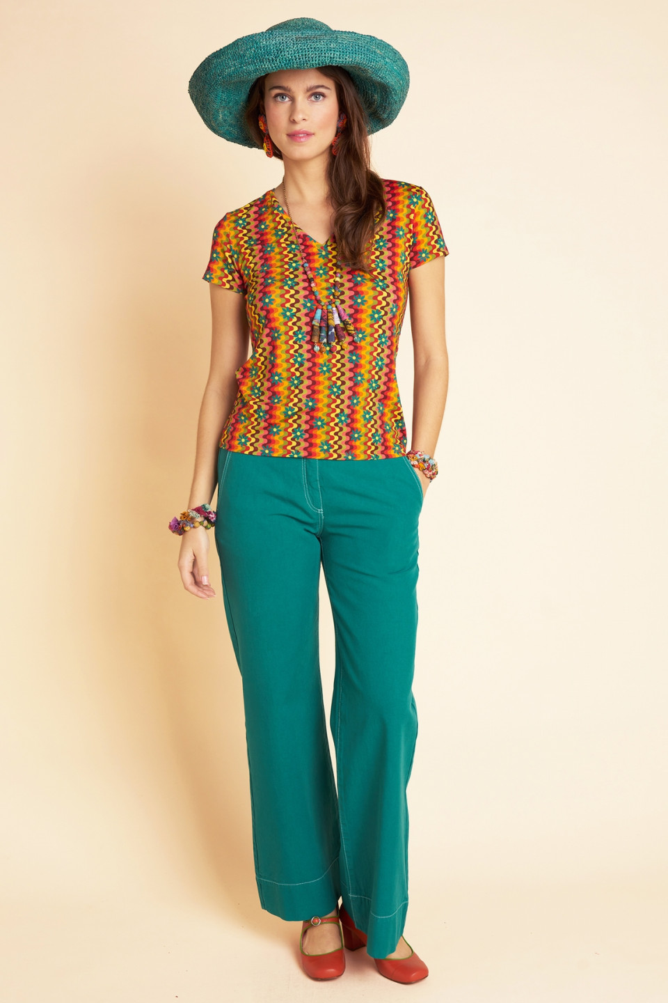 Opt for originality and comfort with our Mauve t-shirt. Its slim fit highlights the silhouette, while its V-neck offers subtle elegance. The exclusive print Antoine and Lili, composed of colorful waves and small flowers, brings dynamism and a colorful charm to this room.