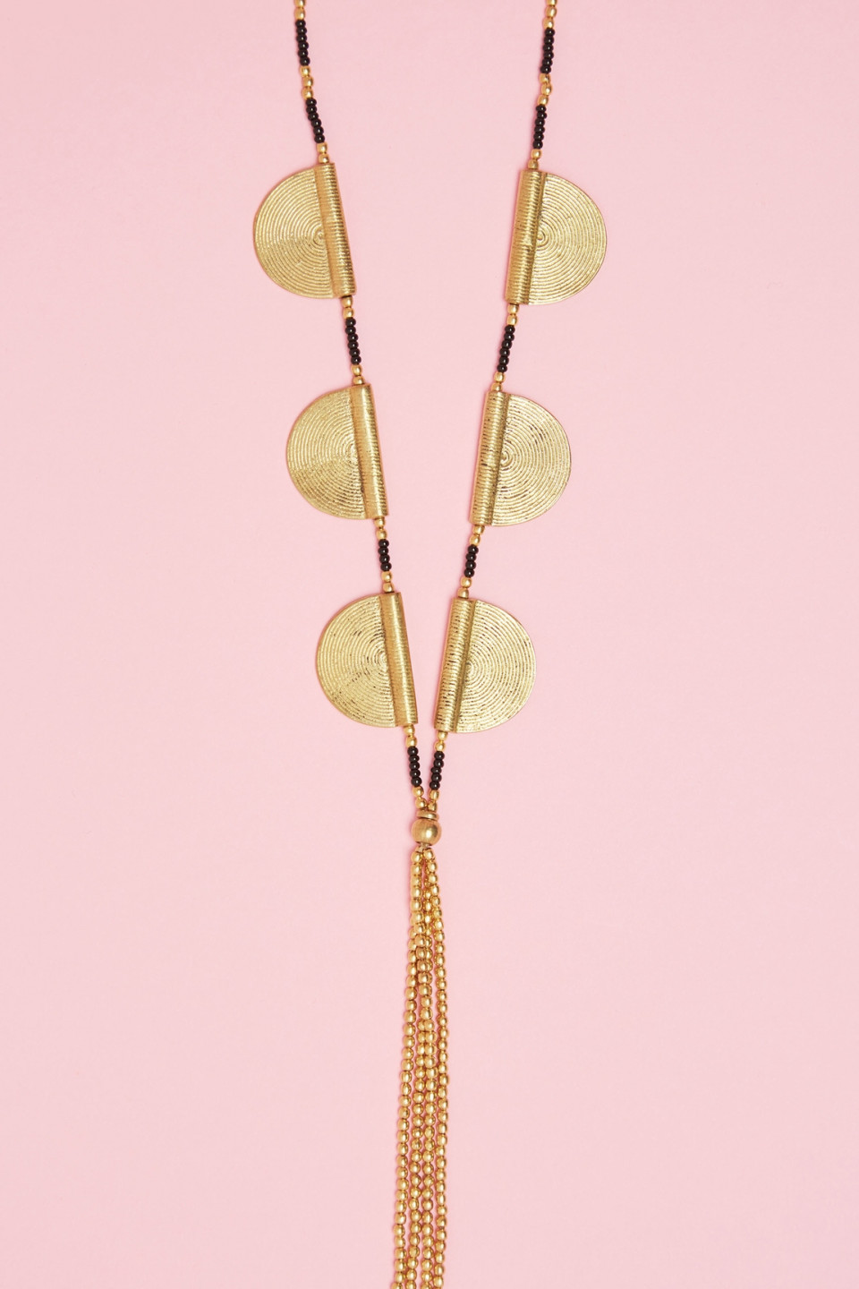 Découvrez notre sautoir Astar en laiton doré. On adore le détail de perles dorées et le côté qui apportent un côté raffiné au bijou !