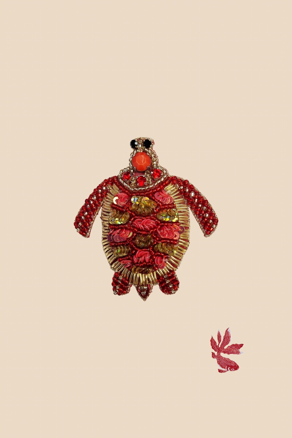 Apportez une touche d'élégance audacieuse et colorée à vos tenues avec notre broche Tortue. Ornée de perles aux nuances vibrantes et de fils délicatement teintés, elle capte la lumière avec un éclat subtil et raffiné.