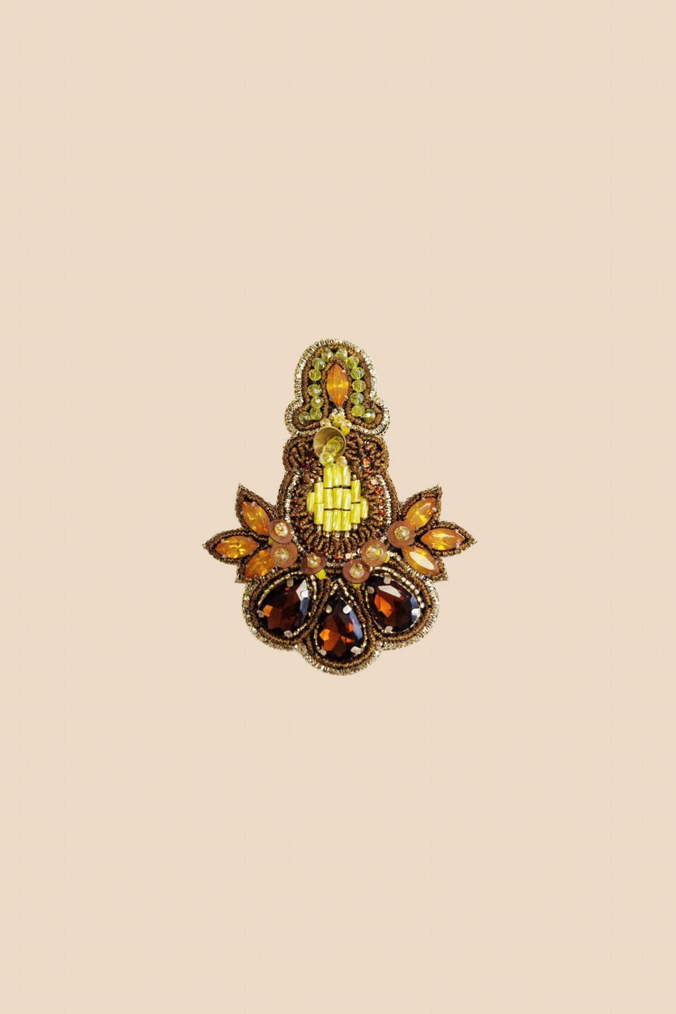La broche Fantaisie illumine vos tenues avec ses nuances chaudes et son design raffiné. Ornée de pierres aux reflets ambrés, de cristaux étincelants et de perles délicates, elle apporte une touche élégante et lumineuse à votre style.