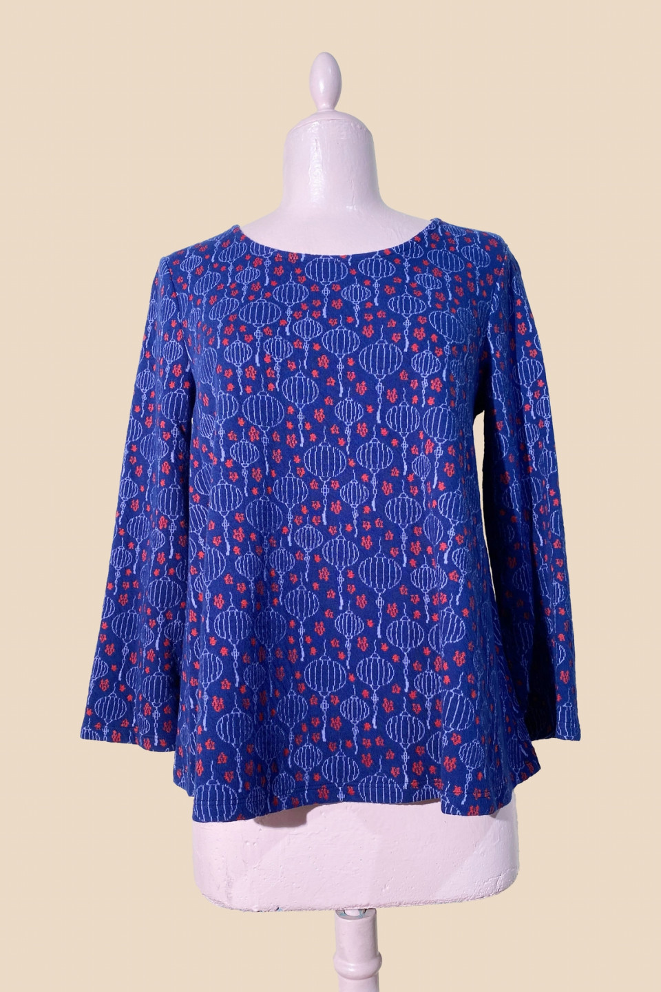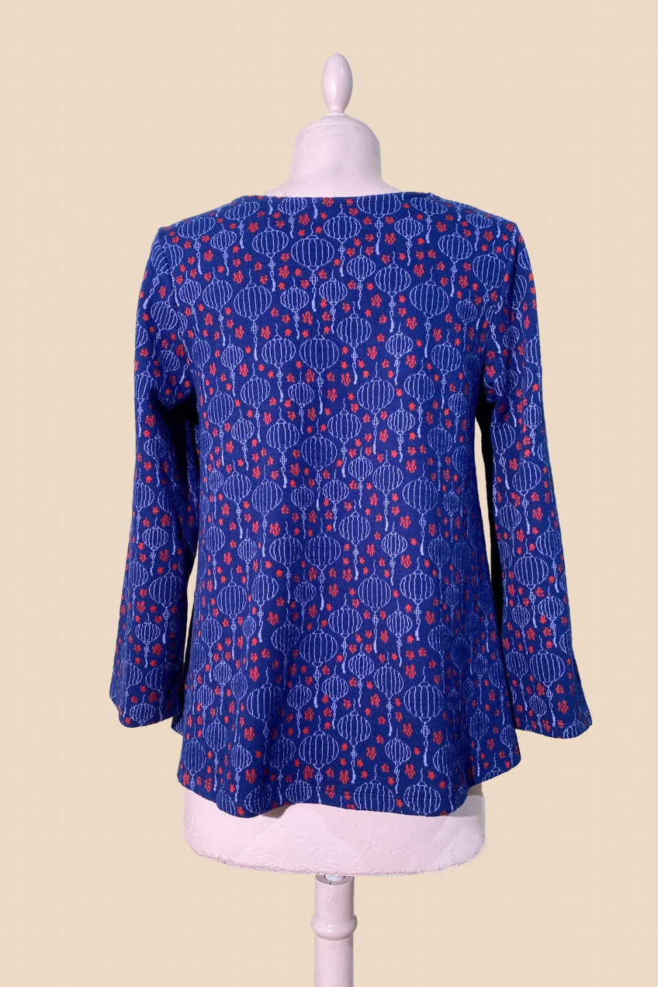 Le haut large Huan impose son style avec élégance et confort. Confectionné dans un jacquard exclusif aux motifs de lanternes, il séduit par sa texture légèrement structurée et ses détails raffinés. Son col rond classique et ses manches longues droites lui confèrent une silhouette simple et harmonieuse. Une pièce parfaite pour rehausser vos tenues du quotidien avec style.