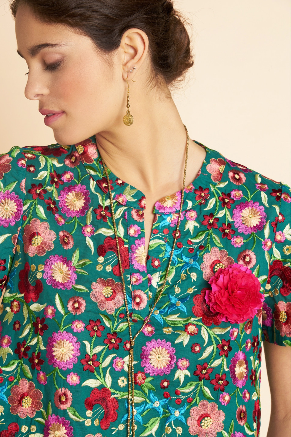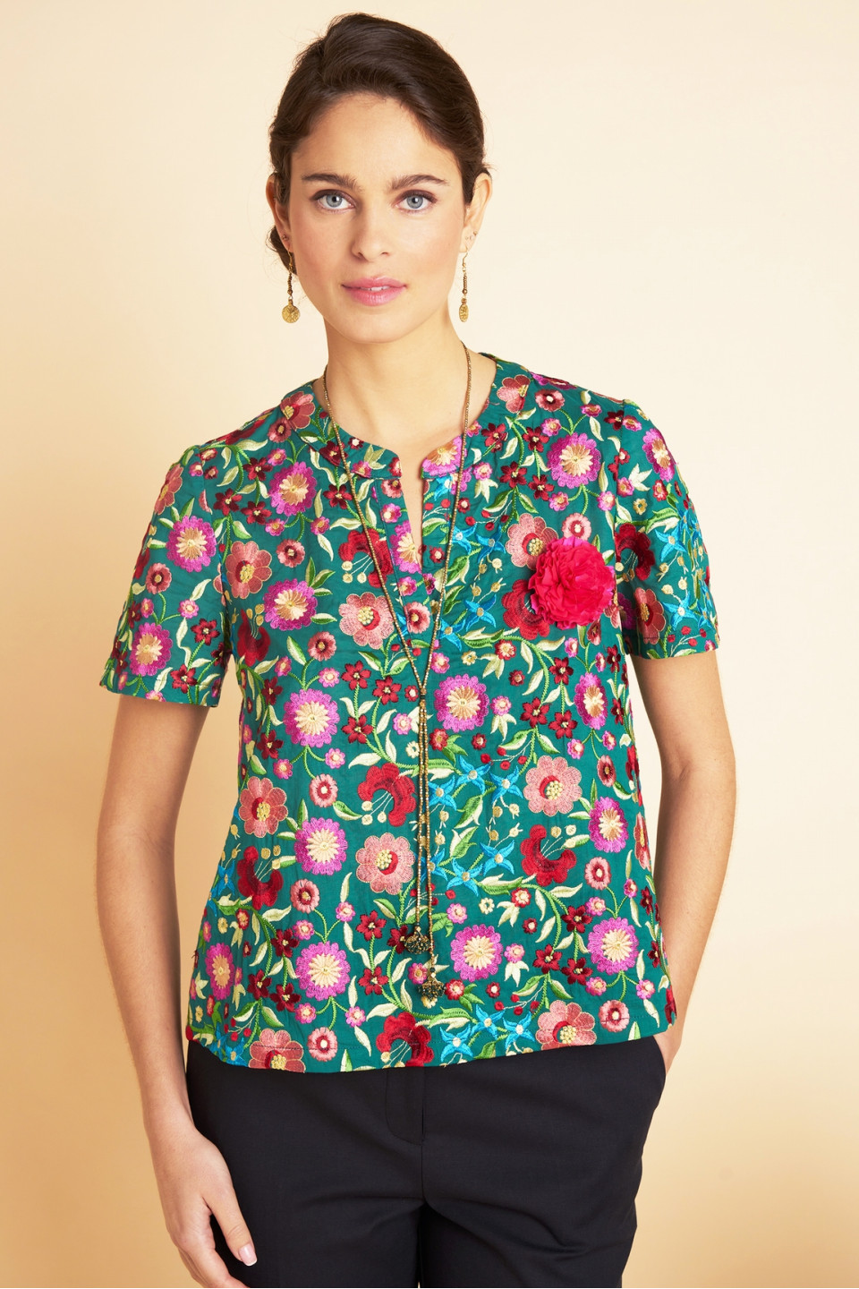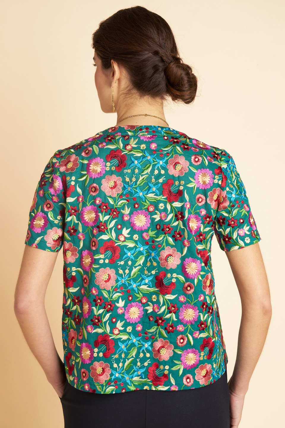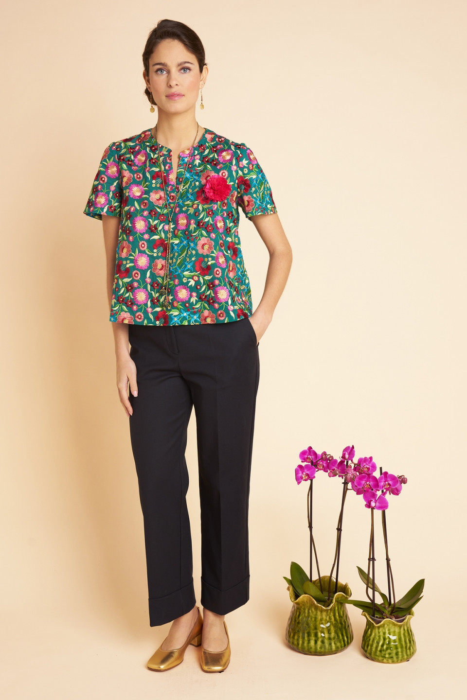 Découvrez le haut Camomille, une pièce lumineuse sublimée par une composition de fleurs délicatement travaillées qui apportent relief et raffinement à l’ensemble. Les broderies florales aux couleurs vibrantes offrent une allure joyeuse et élégante, pleine de caractère. Sa coupe droite, associée à des manches courtes, met en valeur la silhouette avec simplicité et féminité. Confectionné dans un tissu agréable à porter, ce haut séduit par son style chic et son esprit estival.