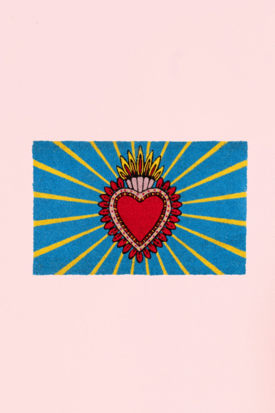 Ce paillasson très coloré est fabriqué en fibres de coco.