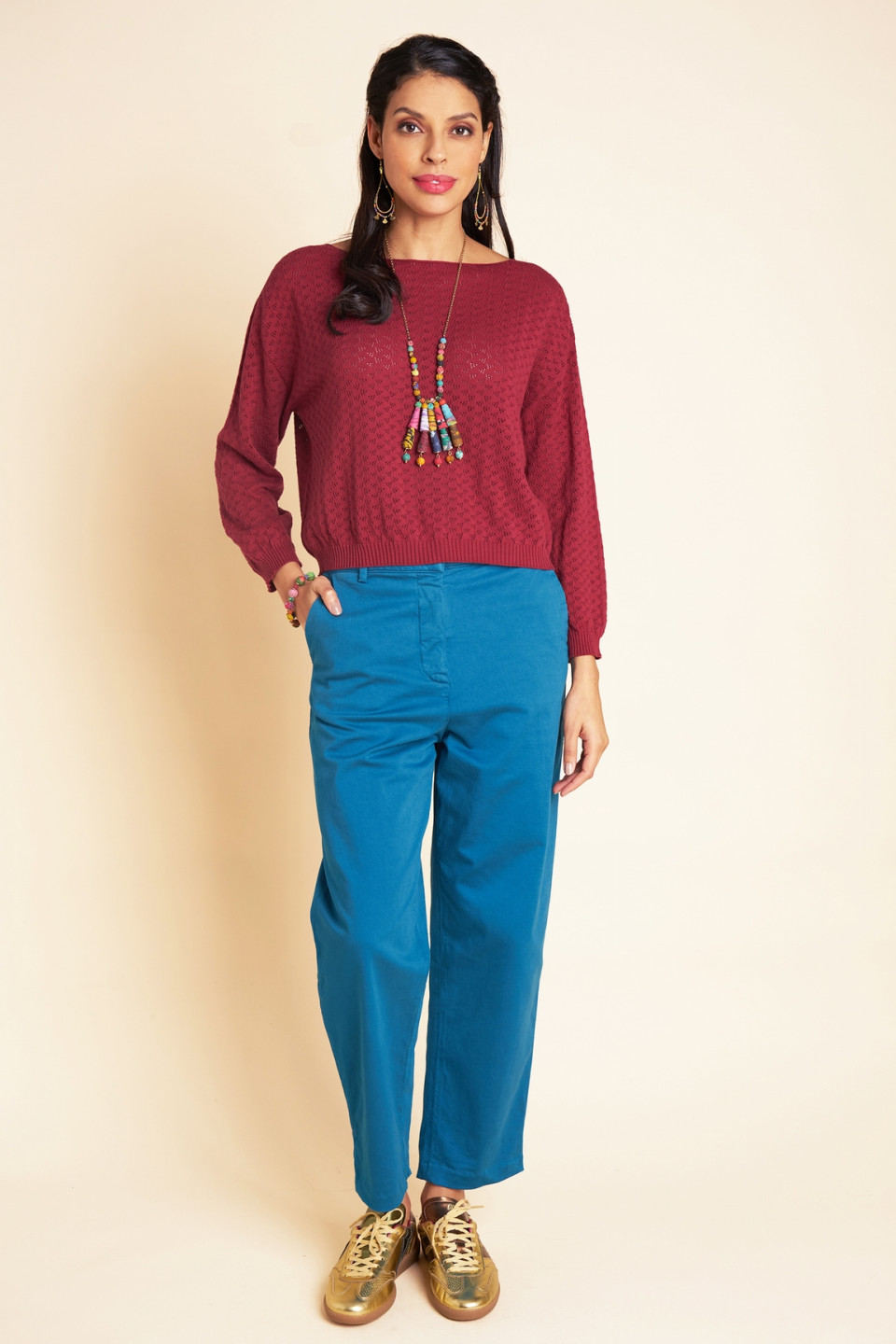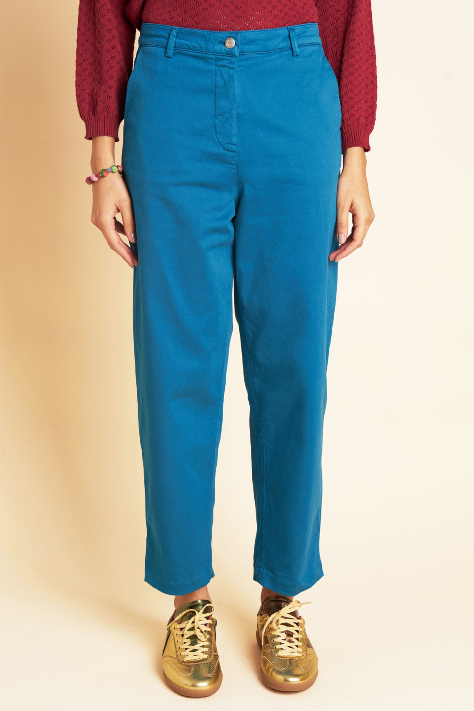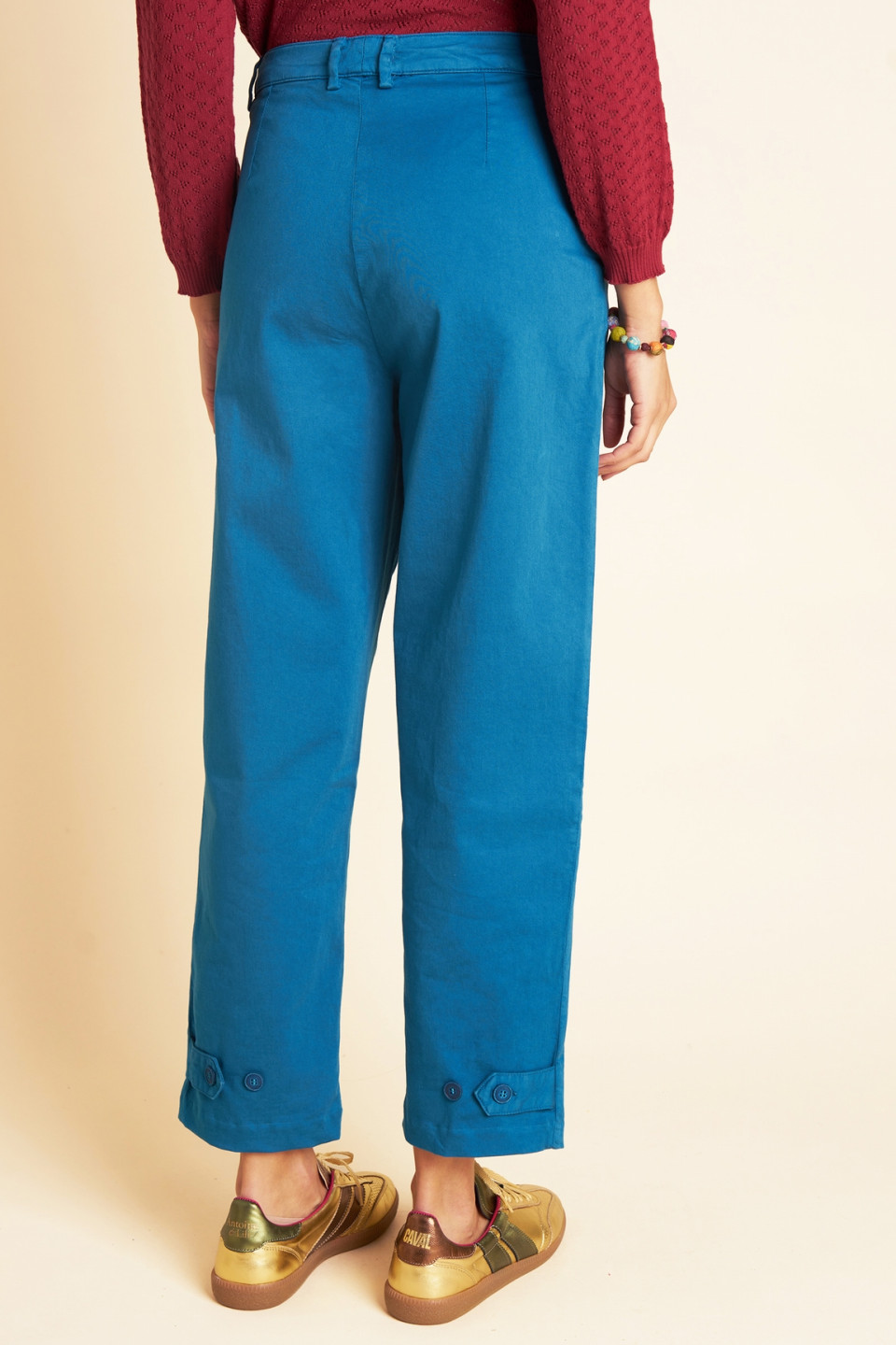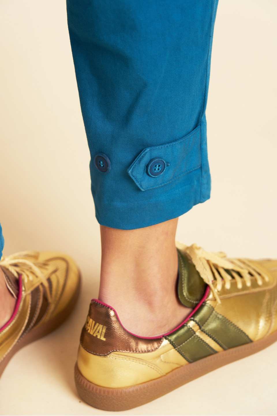 Le pantalon Gabardine Sarah se distingue par son détail signature : une fermeture boutonnée sur la cheville , qui permet de moduler la coupe selon vos envies....