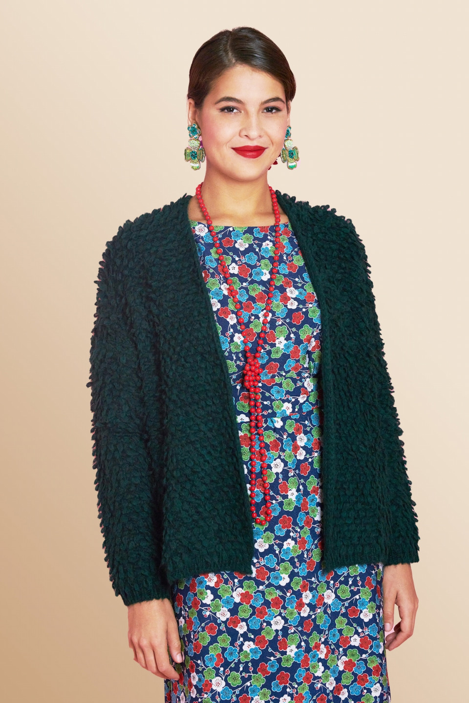 Le gilet Bouclette est en route pour conquérir votre cœur. Que ce soit sur un haut, une chemise ou une robe, ce gilet ample est fait pour vous : il habille votre tenue et y ajoute une touche de gaieté !