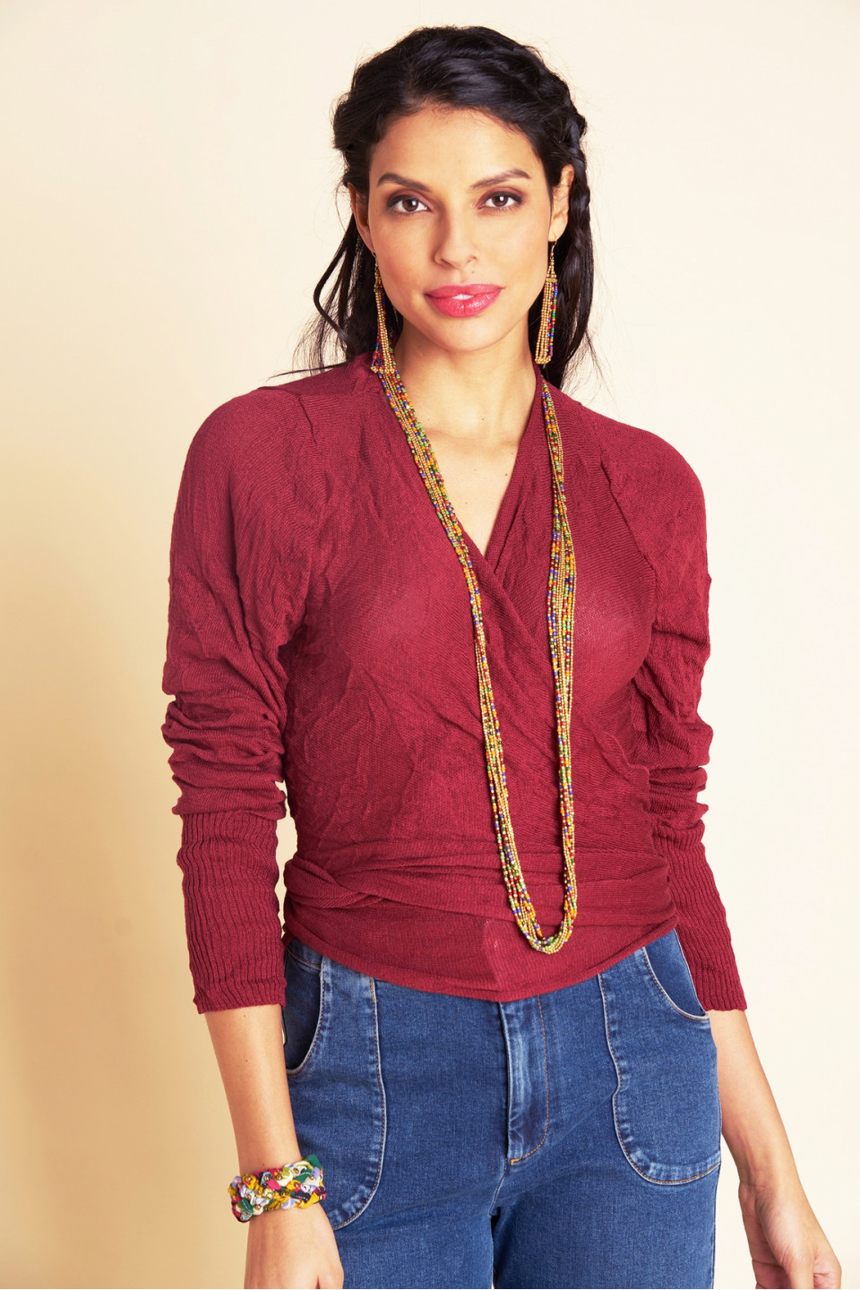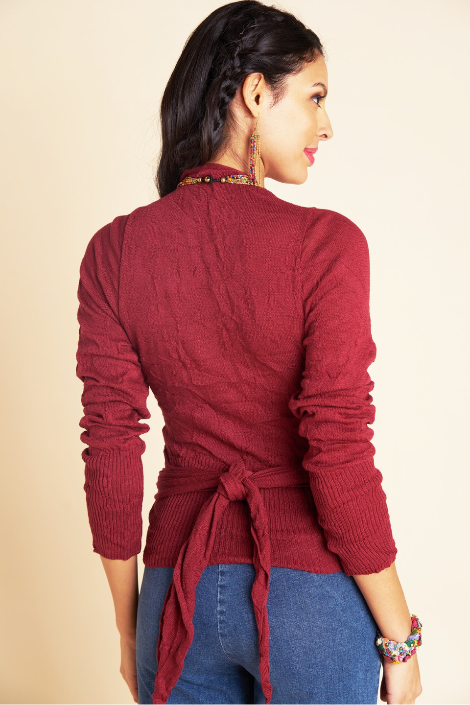 Optez pour l'intemporel cache-cœur Irma à col V croisé et manches longues, avec une fermeture ajustable selon vos envies. Parfait pour ajouter une touche subtile et colorée à votre tenue, il peut être porté ouvert, croisé devant ou noué dans le dos... À vous de choisir !