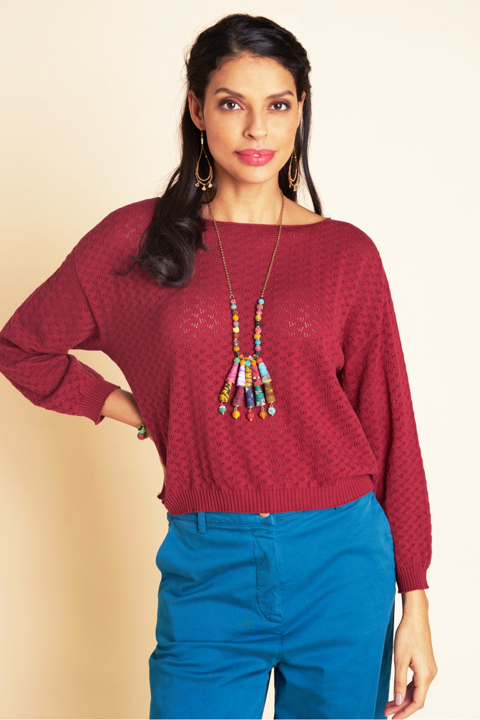 Affirmez votre style avec le pull ajouré Victoria, une pièce délicate et moderne. Confectionné dans une maille ajourée légère, il séduit par son jeu de transparence subtil et son toucher doux. Sa coupe légèrement ample assure confort et aisance au quotidien. Facile à associer, il se porte aussi bien avec un pantalon que avec une jupe pour une silhouette féminine et décontractée.