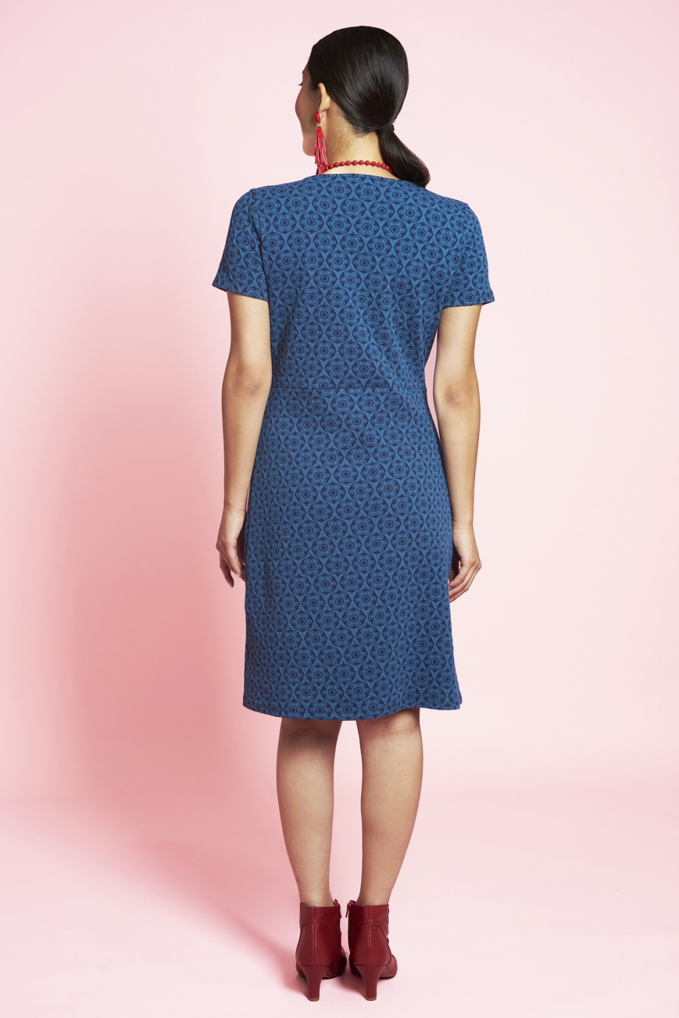 FABRIQUE EN FRANCE EN PETITE SERIE La robe Magali à manches courtes adopte une coupe légèrement évasée avec un joli décolleté V. Son tissu jacquard exclusif...