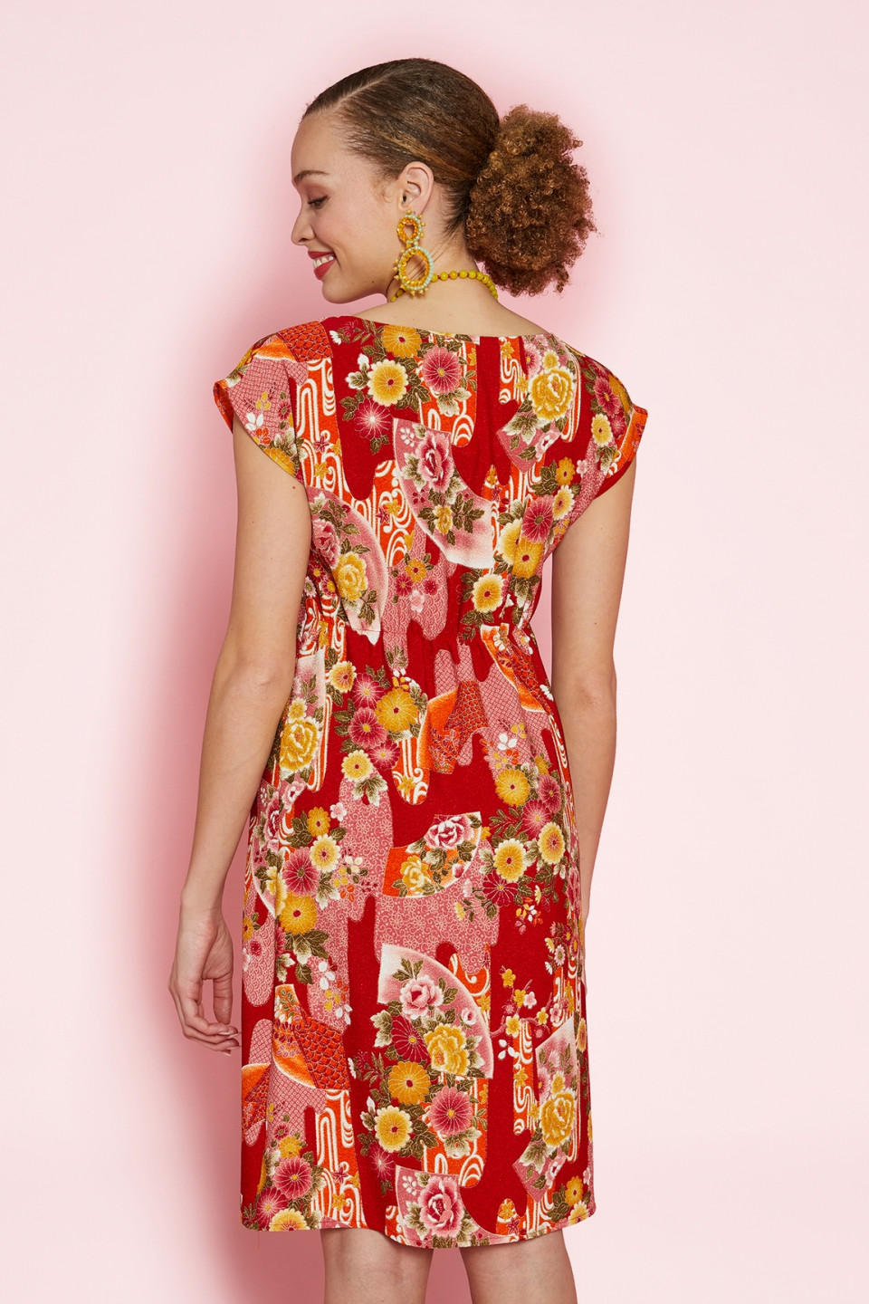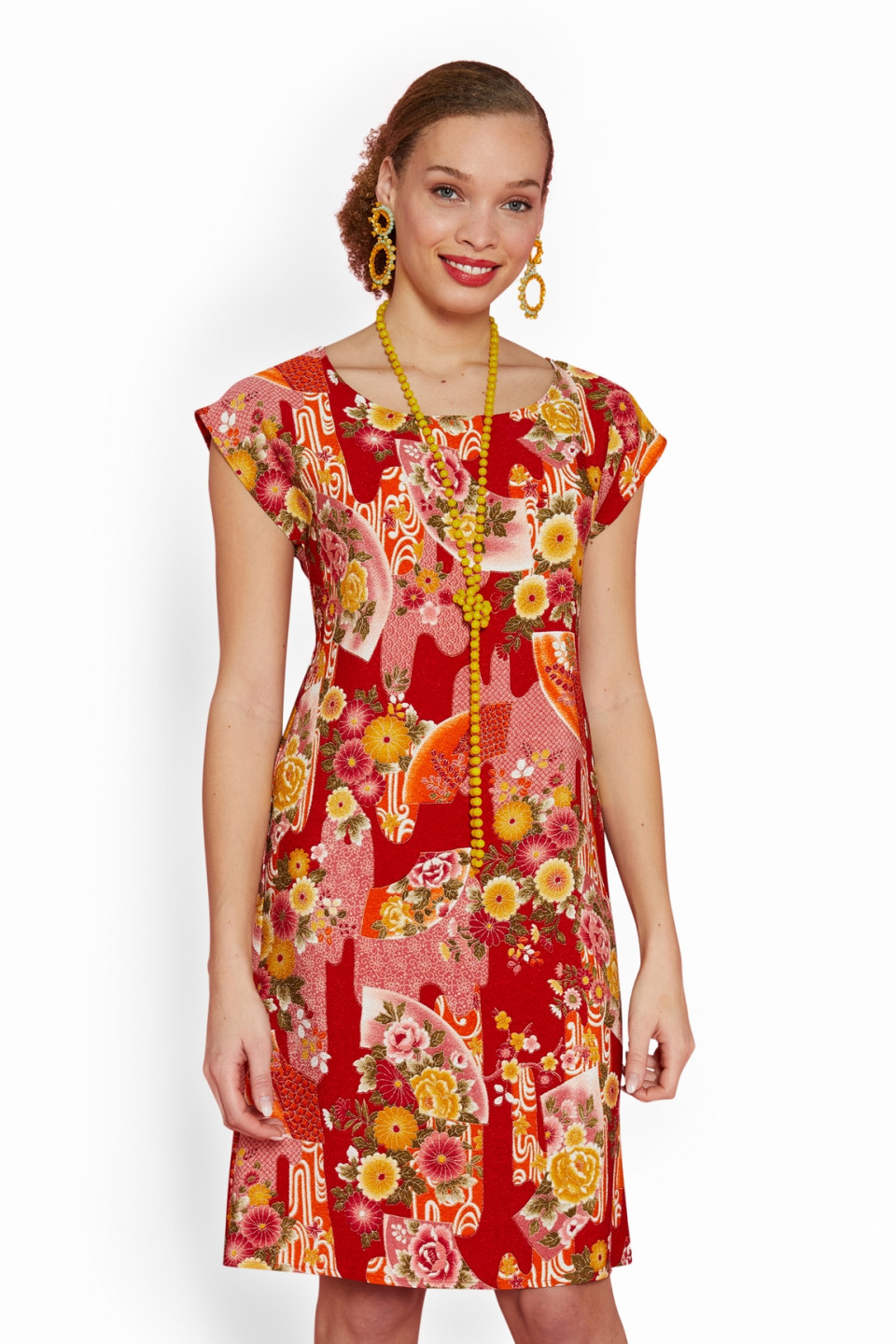 Craquez pour cette jolie robe en tissu polyester chirimen* ! Ce tissu japonais traditionnel est utilisé pour la confection des kimonos. Elle possède un petit élastique dans le dos qui permet de souligner la taille. Une robe fleurie et fraiche à porter au quotidien !