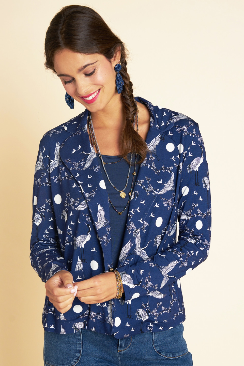 Apportez une touche d'élégance à votre silhouette avec la superbe veste Tam, confectionnée dans un tissu orné de l’imprimé exclusif Antoine et Lili. Sa coupe droite, ses manches longues, son col tailleur et ses deux petites poches à l’avant lui confèrent une allure chic et intemporelle. Une pièce raffinée, parfaite pour sublimer vos tenues de saison.